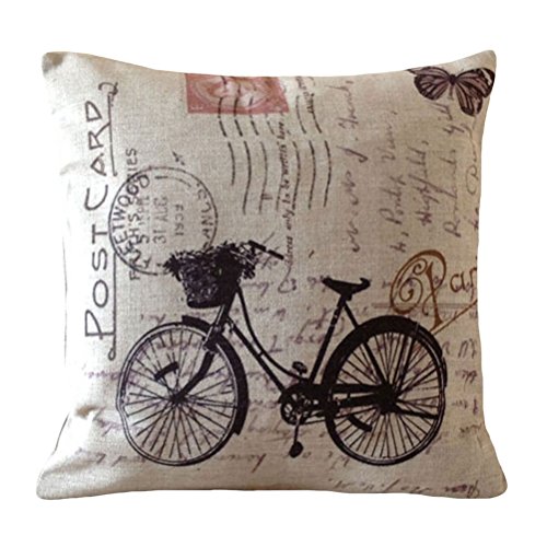 Aeneontrue Cotton Linen Post Card Bicycle Butterfly Print Decorative Throw Pillow Cover Cushion Cover 18 x 18