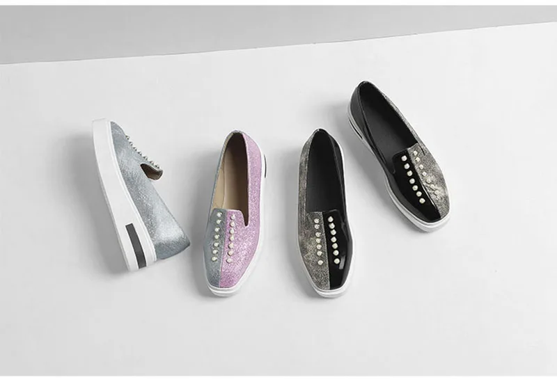 Leather Thick Heels Shoes:Ladies Lazy Shoes
