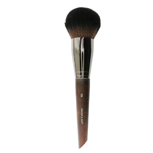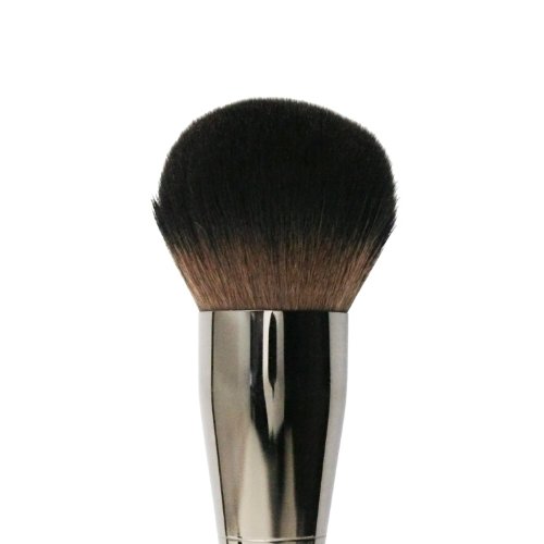 This brush is particularly soft for generous, perfectly even application. Its thickness and density allow it to offer moderate-to-high coverage, and the long handle allows a grip farther from the tuft for increased movement when applying. It features both straight and wavy fibers, and can be used with loose and compact powders. 0
