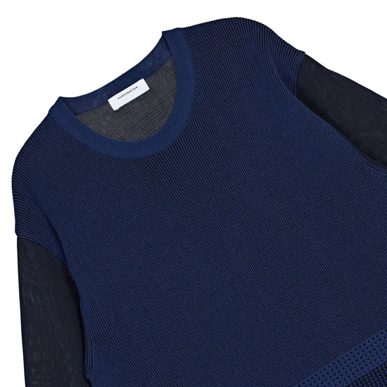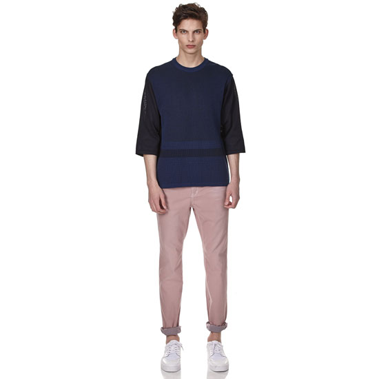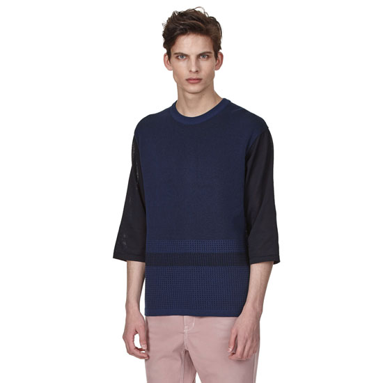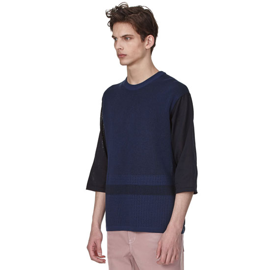 - 조직이 다른 니트 블럭의 조화로 감각적인 남성 니트.