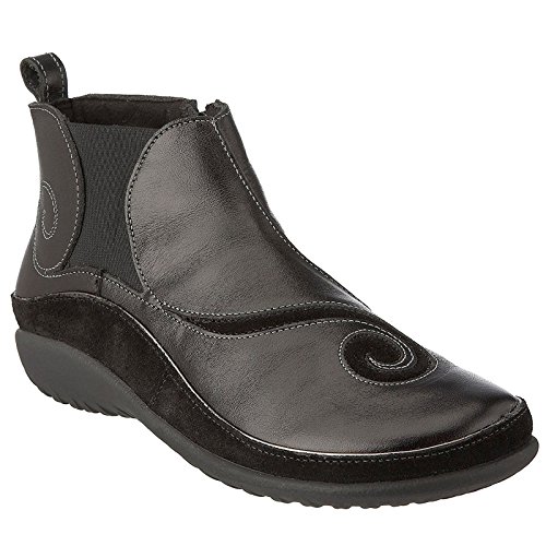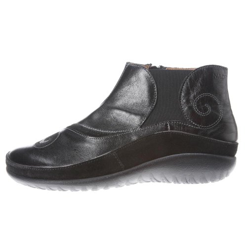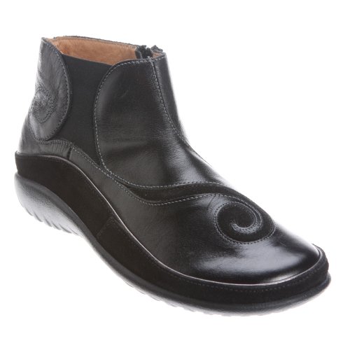 Studio : Naot Publisher : Naot Binding : Shoes Product Description The Naot Chi is a bootie with a unique contrasting swirl design. This style has a heel cup for support. The Chi has an inside zipper for accessibility and gore for adjustability. The Chi has a 3.5" shaft. Naot's removable, anatomic cork latex footbed is wrapped in pampering suede and molds to the shape of the foot with wear. 0