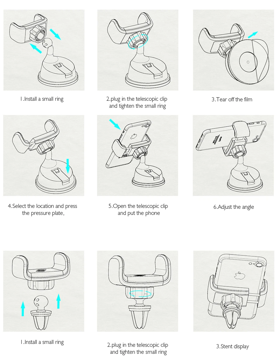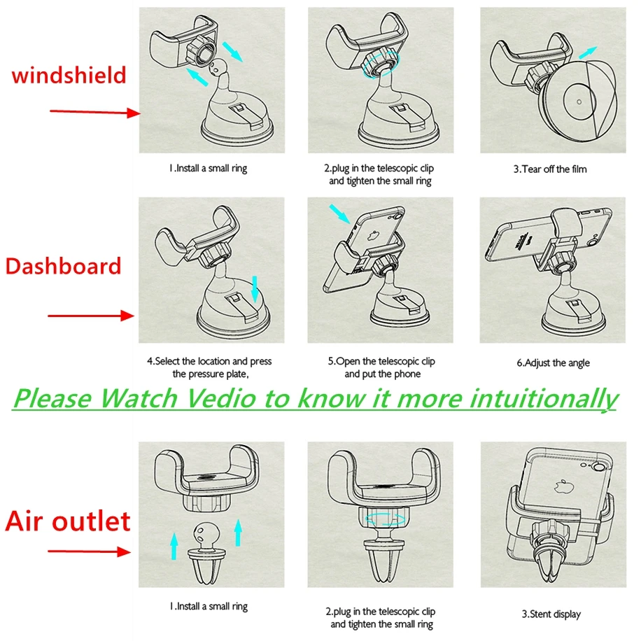Pack list:Outlet Clip + Sucker Base + Stretch Head Suit