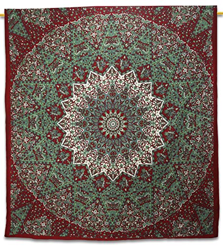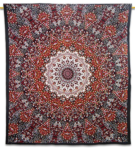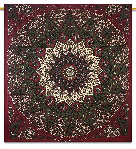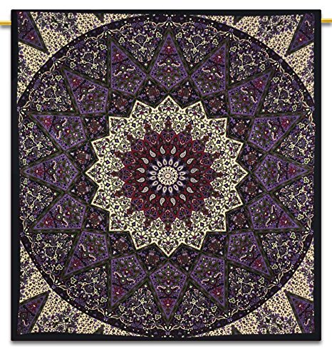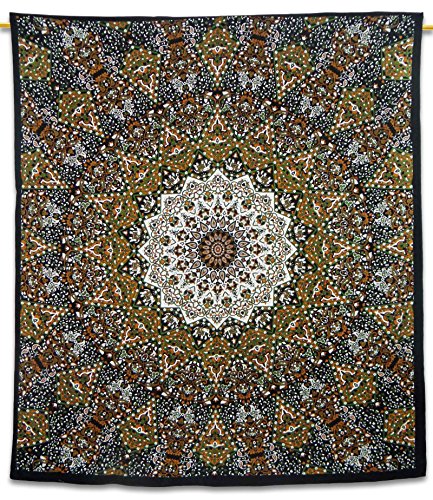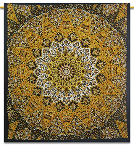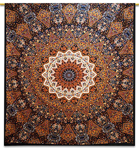 * Beautiful Indian Screen Printed Cotton Mandala Tapestry/ Bed Cover in Full size.