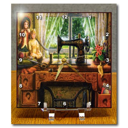 Image Of 1899 Singer Sewing Machine In Country Room Desk Clock is a wonderful complement to any room in your home or office. Made of durable high grade aluminum. This clock has a high gloss mirror like, UV coated, scratch resistant finish and is suitable for a moist environment. Measures 6" x 6" and requires one AA battery; not included. Battery box is not covered.Feature