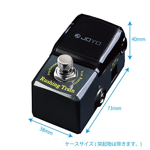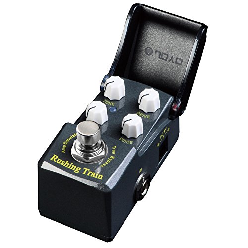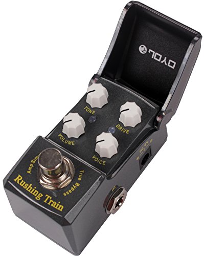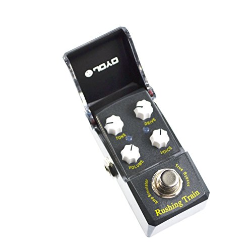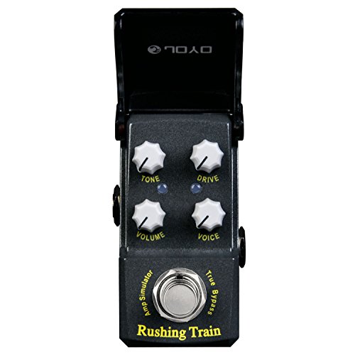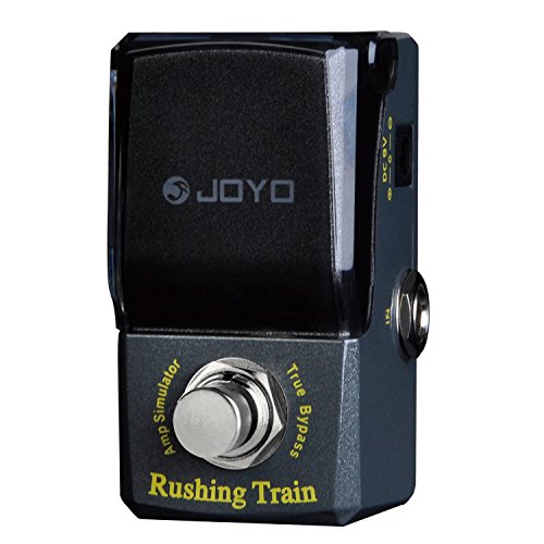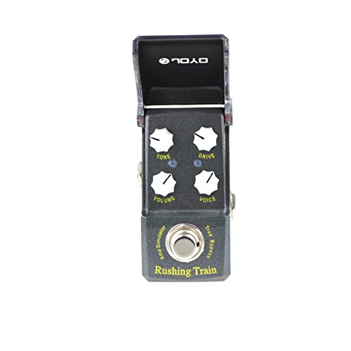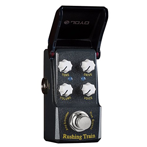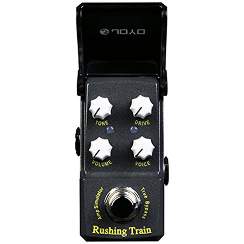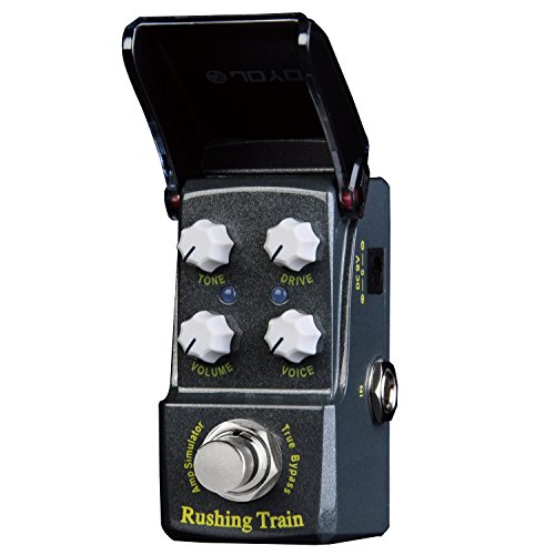 Studio : Joyo Publisher : Joyo Binding : Electronics Product Description JOYO'S NEW "RUSHING TRAIN" VOX Inspired AMP SIM/OVERDRIVE In the new IRONMAN mini series. First time for sale in the U.S. !! Joyo is back with their much anticipated Ironman mini series. Well built little units with a great tonal response. These little minis are housed in a very solid metal casing with a features an ingenious housing enclosure over the knobs that protects your tone settings from accidental movement and also protects from dust, spills etc. The LED will show through the black plexi face when the unit is engaged. Very nice touch! Inspired by the famous VOX tonal response, the new Rushing Train is a powerful little unit with a nice attack and can dial in a signature sound. Either use as an actual amp simulator or when placed in front of the amp this little beast shines as well. Features Volume, Tone, Drive and Voice. Rushing Train's dimensions are: 1 1/2" W x 2 3/4 " H x 1 1/2" D True Bypass Construction. Great little unit from Joyo ! 0