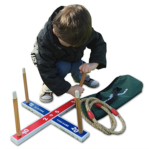 [Description] Fun kids games for the family: the elite ring toss game set includes 5 durable rope rings: a sturdy wood base with point markings screw in pegs and very convenient carry storage bag Kids games can help positively channel a child``s physical and mental energies: game play can also help a child improve concentration skills and teach the importance of task completion: they can improve their own self esteem Group games help kids become more socially adept: not only do kids improve their interpersonal skills they learn valuable lessons about team spirit and healthy competition: a child can learn that it is healthy competition rather than winning that is most important Kids can improve eye-hand coordination as well as fine motor skills: and even facilitate the understanding of complex math equations Lifetime replacement warranty: at elite sportz we want you to be 100% happy with your purchase: please contact us if you have any issue at all with the product and we will replace it immediately