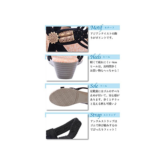 가벼워 피곤해져 어려운4cmheel은,장시간 걷는 쇼핑도 식은 죽 먹기! 비치로도,리조트지 에서의 결혼식으로도 최적입니다♪화뒤도 귀여운 때문에,모래사장을 걷는 것도 즐겁다☆ 색은 블랙과 화이트의 2색.캐쥬얼한 중으로 물건이 있는 디자인은 매우 편리한 때문에,2색 있으면 뱀 러《데》틀림없음☆