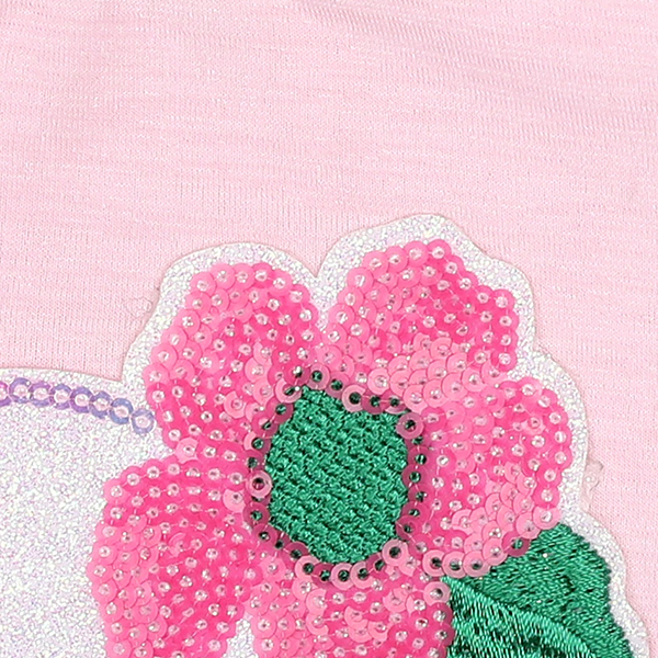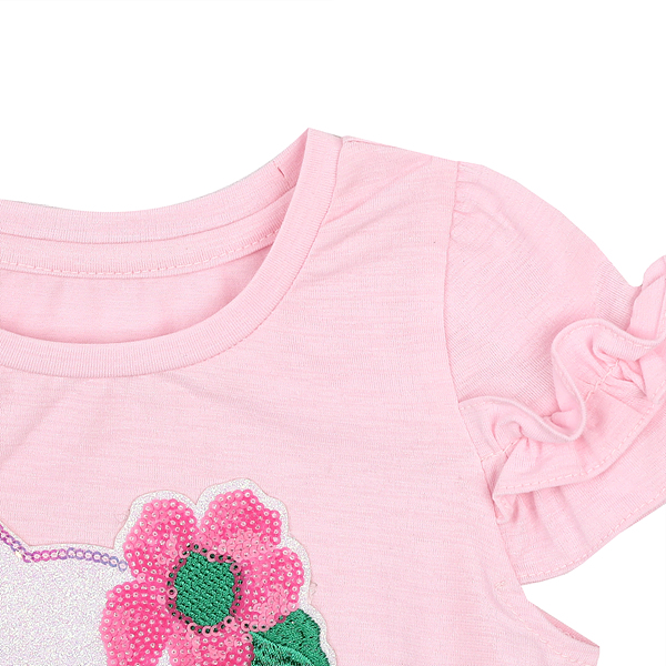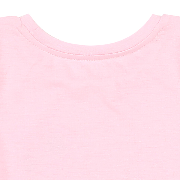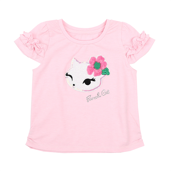 핑크꽃 고양이캐릭터가 귀엽고 어깨프릴장식이