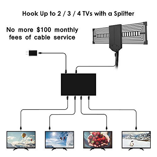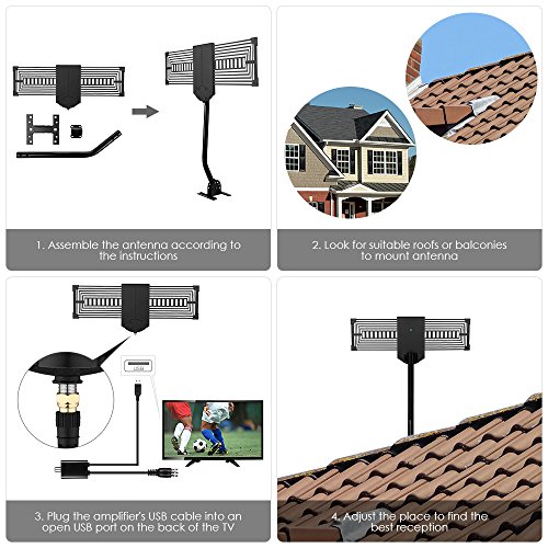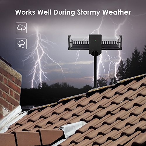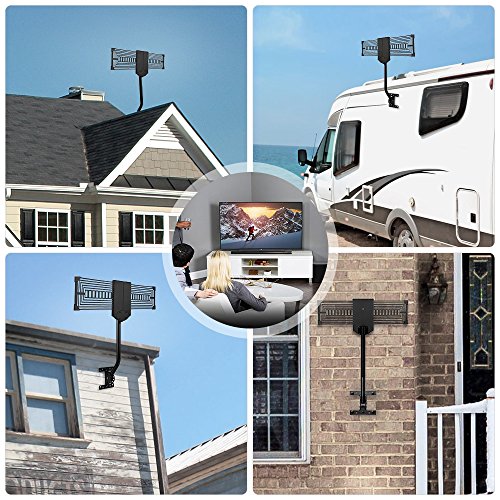No more $100 monthly fees of cable service. Famirosa outdoor antenna can receive free digital broadcast high definition TV signals, get access to free HD TV channels like ABC, CBS, NBC, PBC Fox in 150 miles range with amplifier. The Strength of signal depends on what is broadcasted in your area, your distance from broadcast towers, and any geographical obstructions between you house and the towers. Features - Excellent 360 degree Omni-directional reception with range up to 150 miles - Support all HDTV digital and analog signals - All weather operation anti-lightening, durable and anti-corrosion - Safety design with (green) ground lead screw and corner protectors - Easy installation in minutes with all necessary accessories included - Enough longer coaxial cable (33ft)to connect antenna to TV Reception Tips - Before you buy, visit "dtv.gov/maps" to check how many stations you can receive, and how many broadcast towers available within 150miles. - Remember to re-scan for TV channels after moving the outdoor antenna. - Place the antenna higher to improve the reception of the broadcast signals. - Ensure that your TV has a built-in digital tuner or the set-top box supports digital HD tuning. Specification Working Frequency: VHF47~240MHz, UHF 470~862MHz Reception Range: 150 Miles Receiving Range: VHF/UHF/FM Antenna Gain: 32dB Max (with Amplifier) Impedance: 75Ω Noise figure: ≤3dB Power Supply: USB Adapter Coax Cable Length: 33ft Package Includes Outdoor HDTV antenna 150 mile / TV antenna pole mount / Mast bracket / Detachable amplifer / USB Power adapter Hardware pack / 33ft coaxial cable / User manual / Service card 0 |