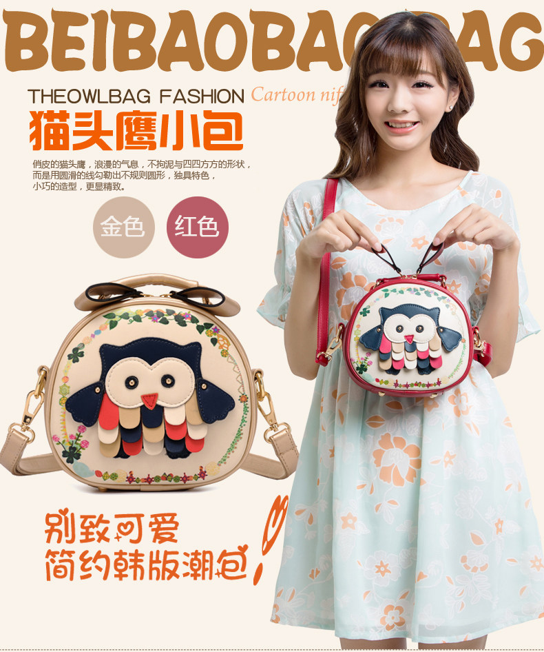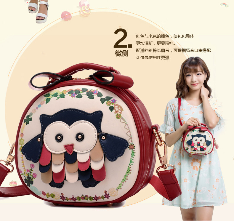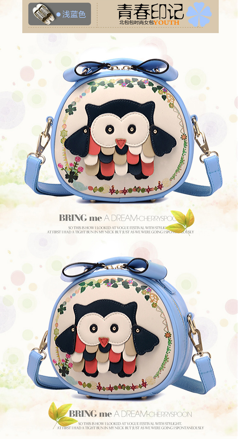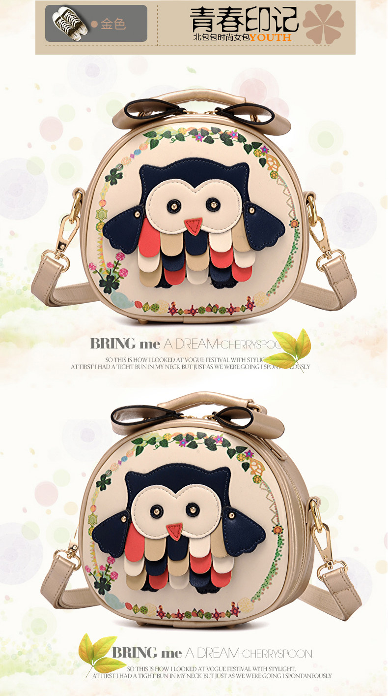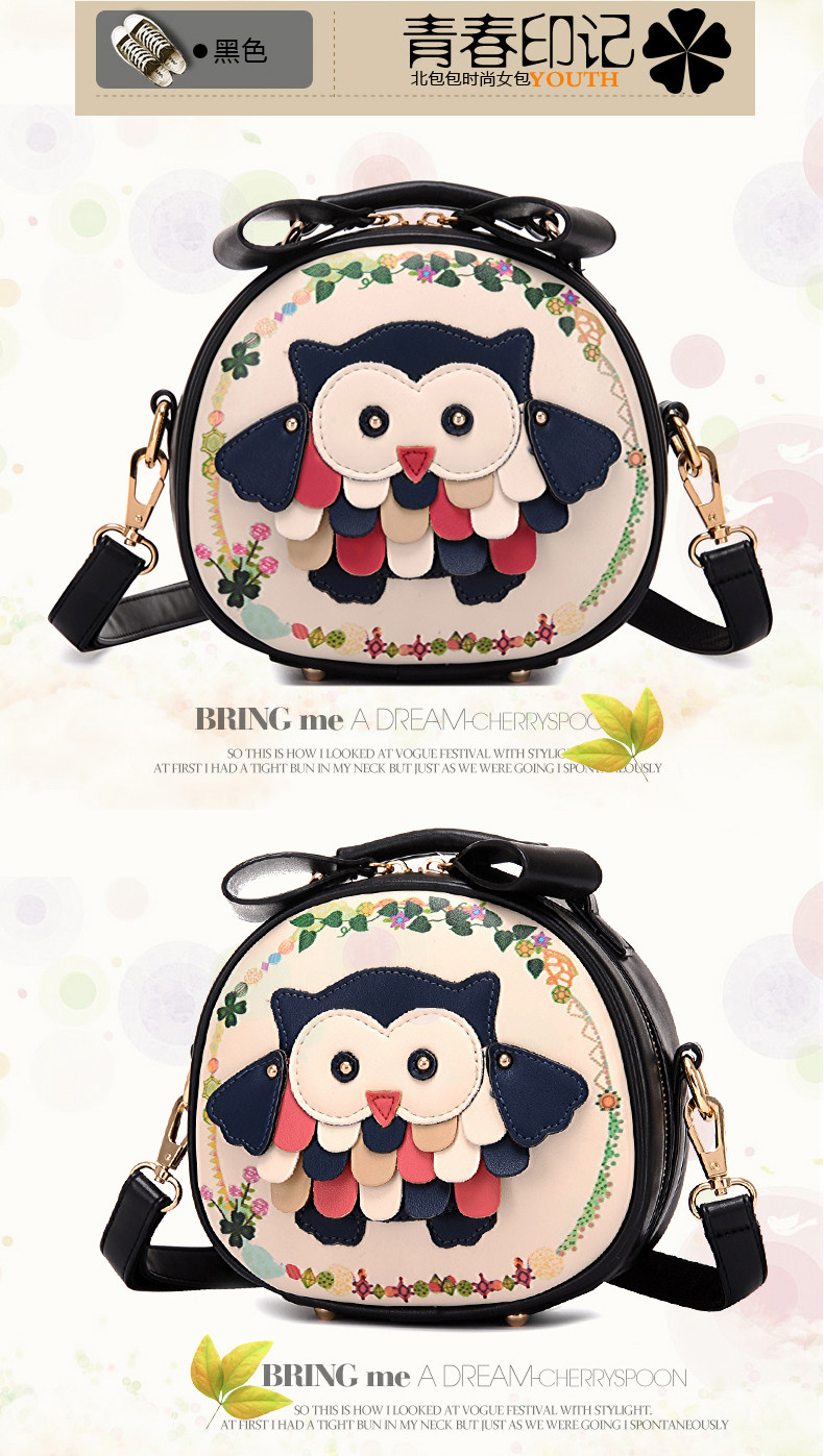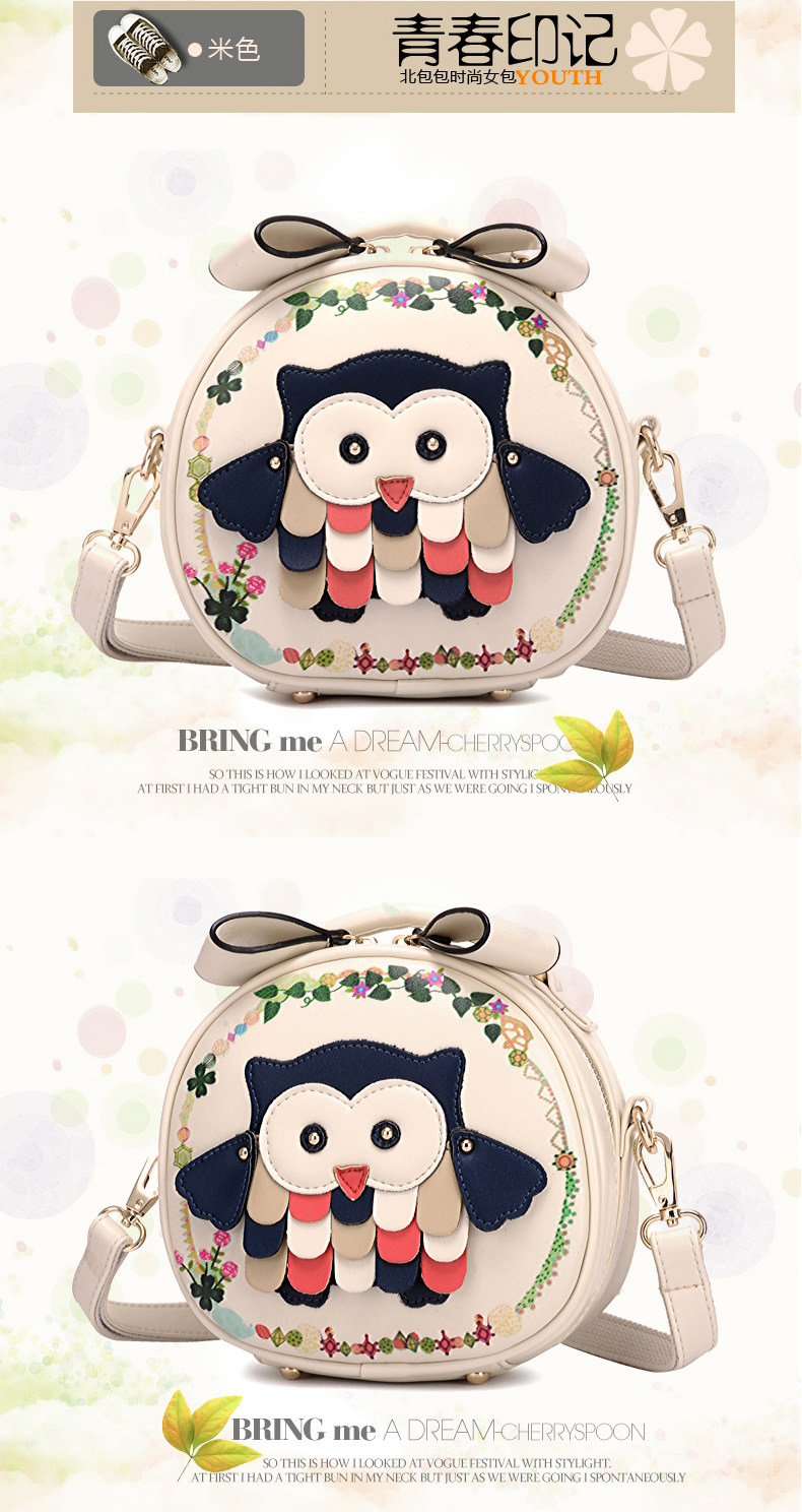 北包包单肩斜挎包撞色个性圆形包包小清新皮包猫头鹰斜跨女包简约