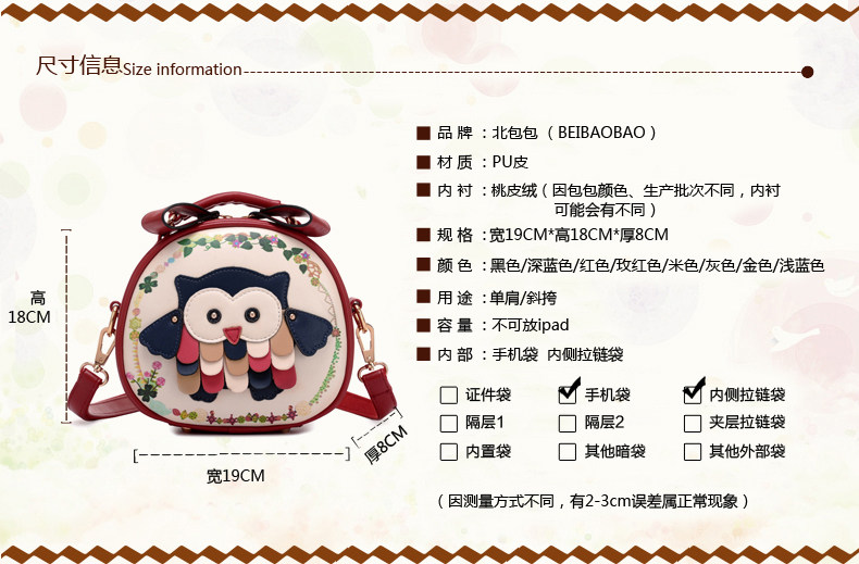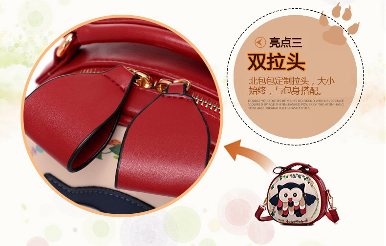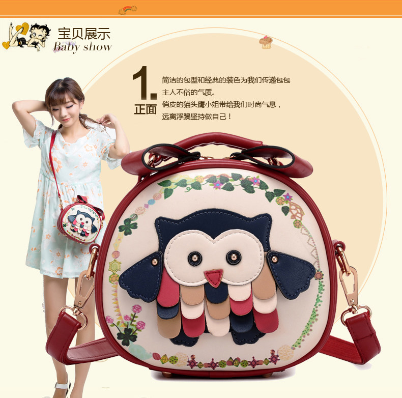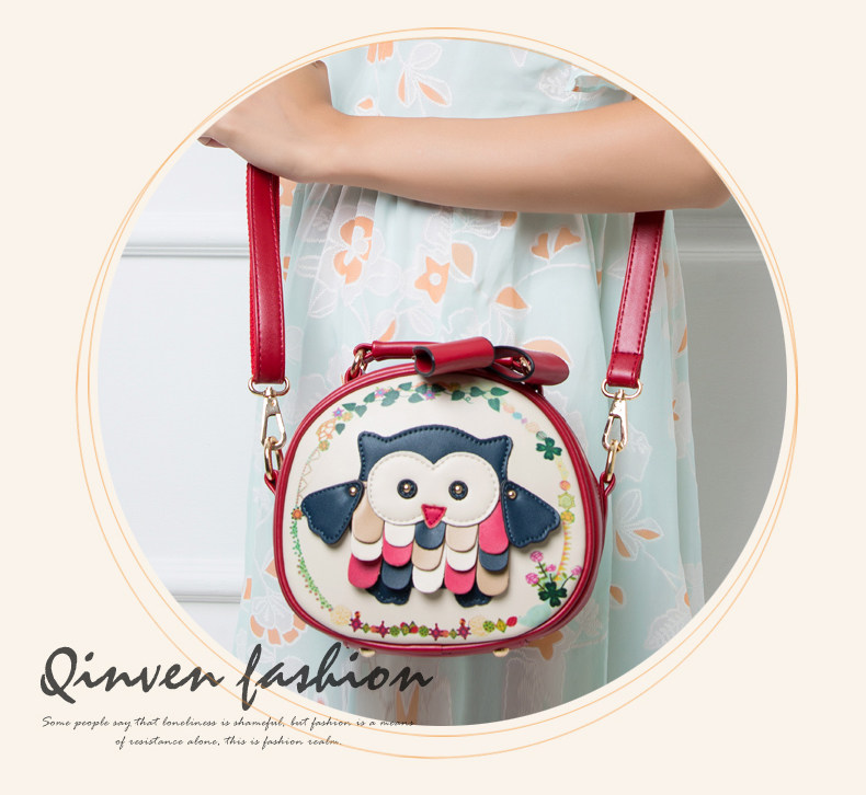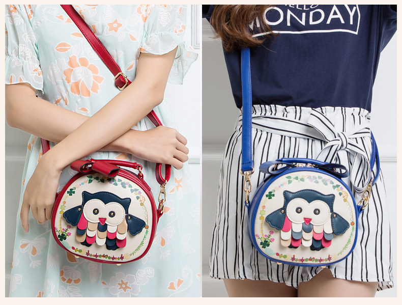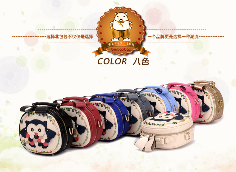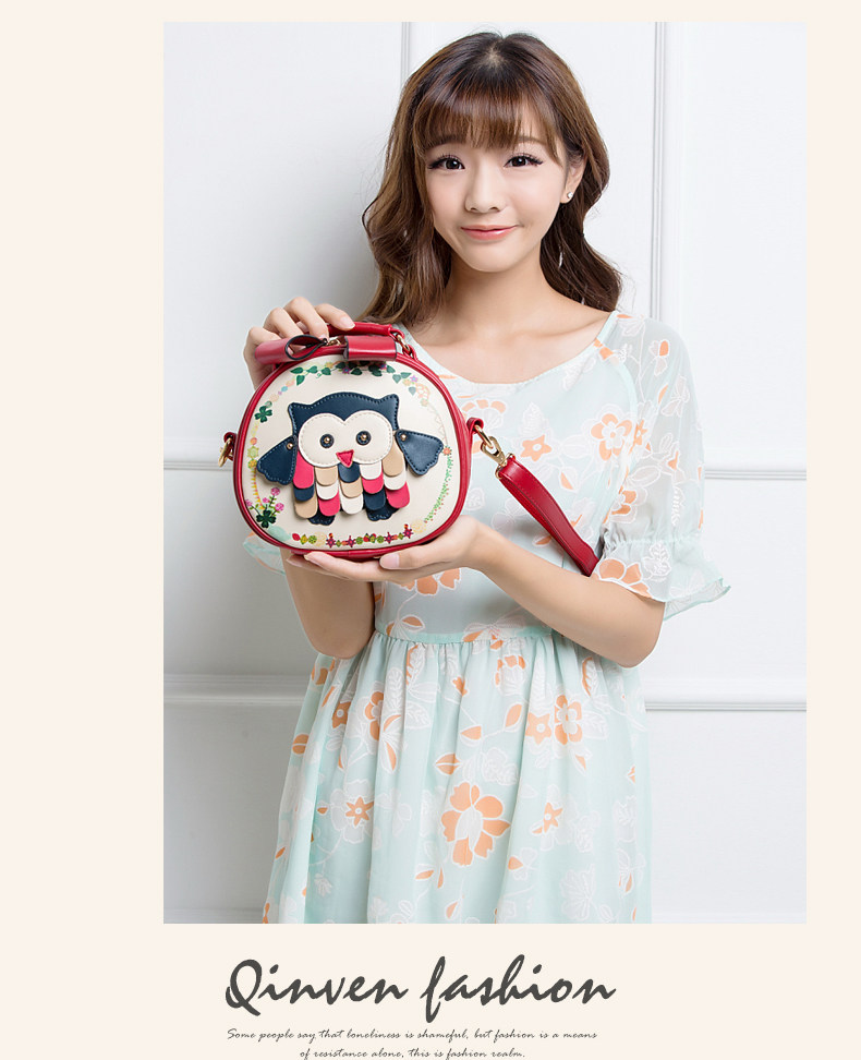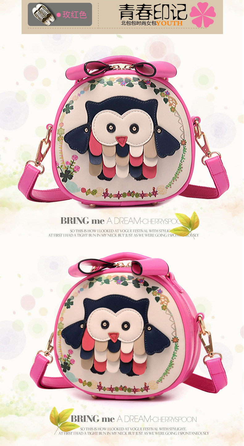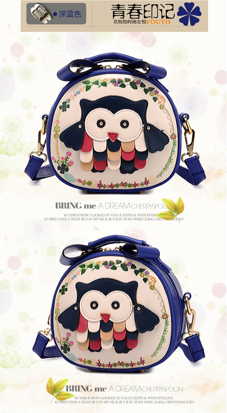 北包包单肩斜挎包撞色个性圆形包包小清新皮包猫头鹰斜跨女包简约