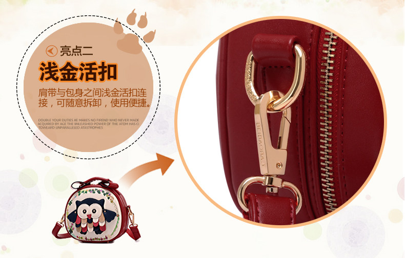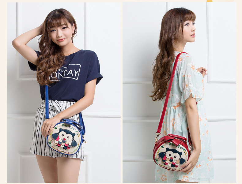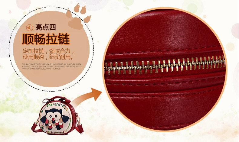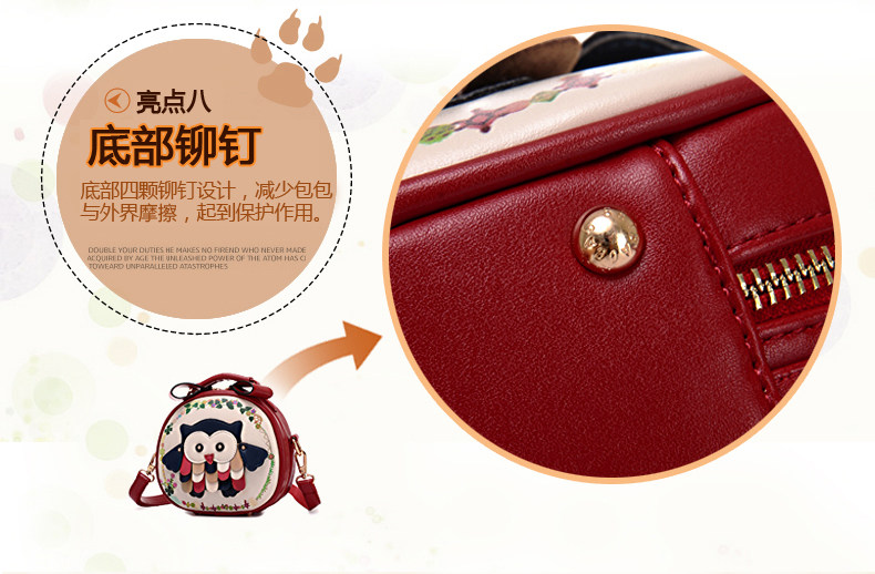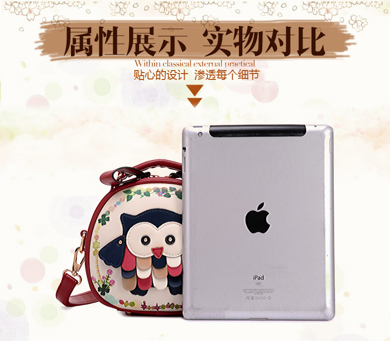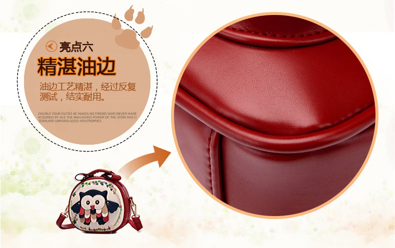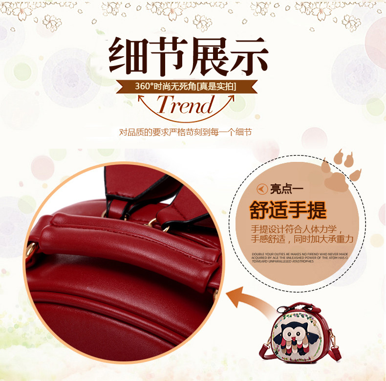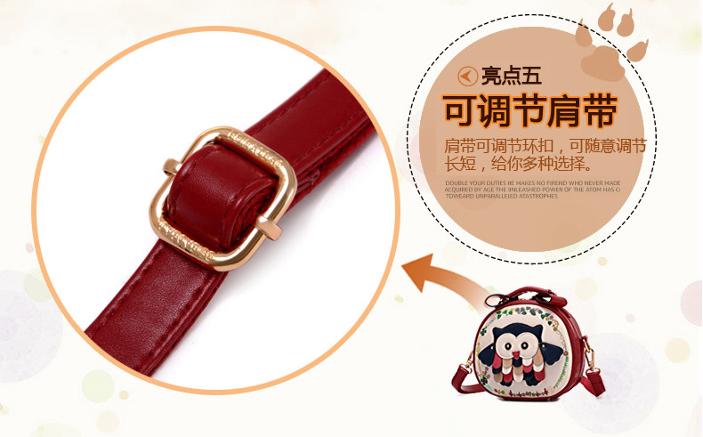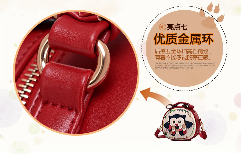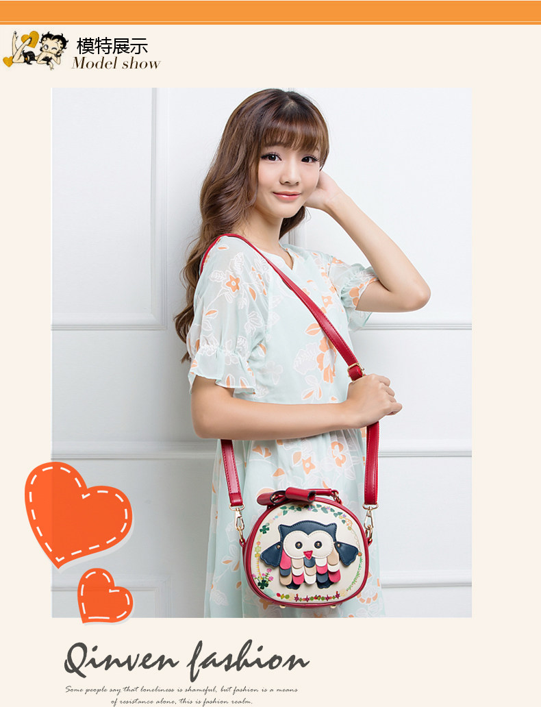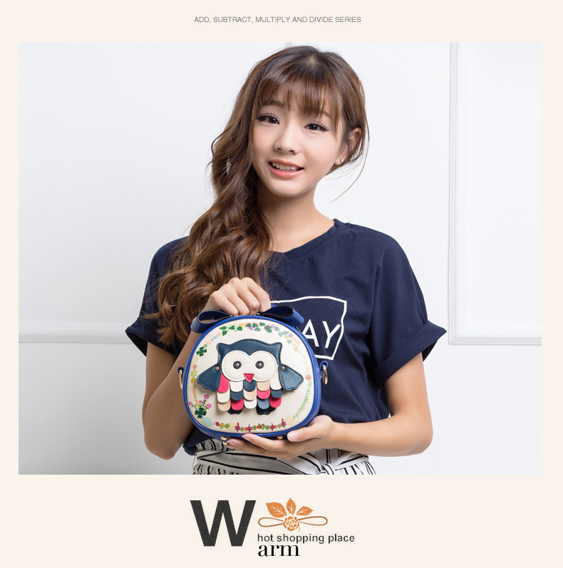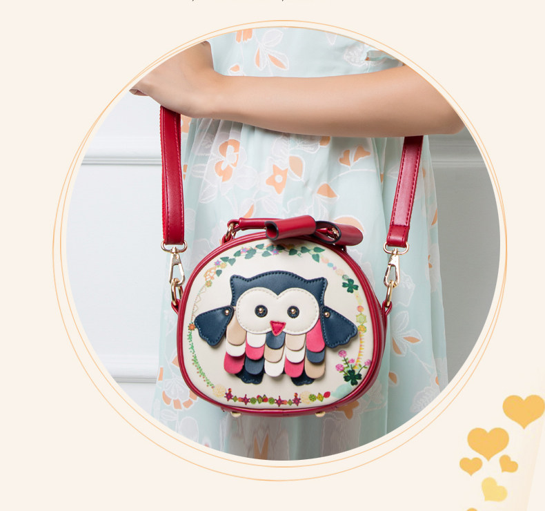 北包包单肩斜挎包撞色个性圆形包包小清新皮包猫头鹰斜跨女包简约