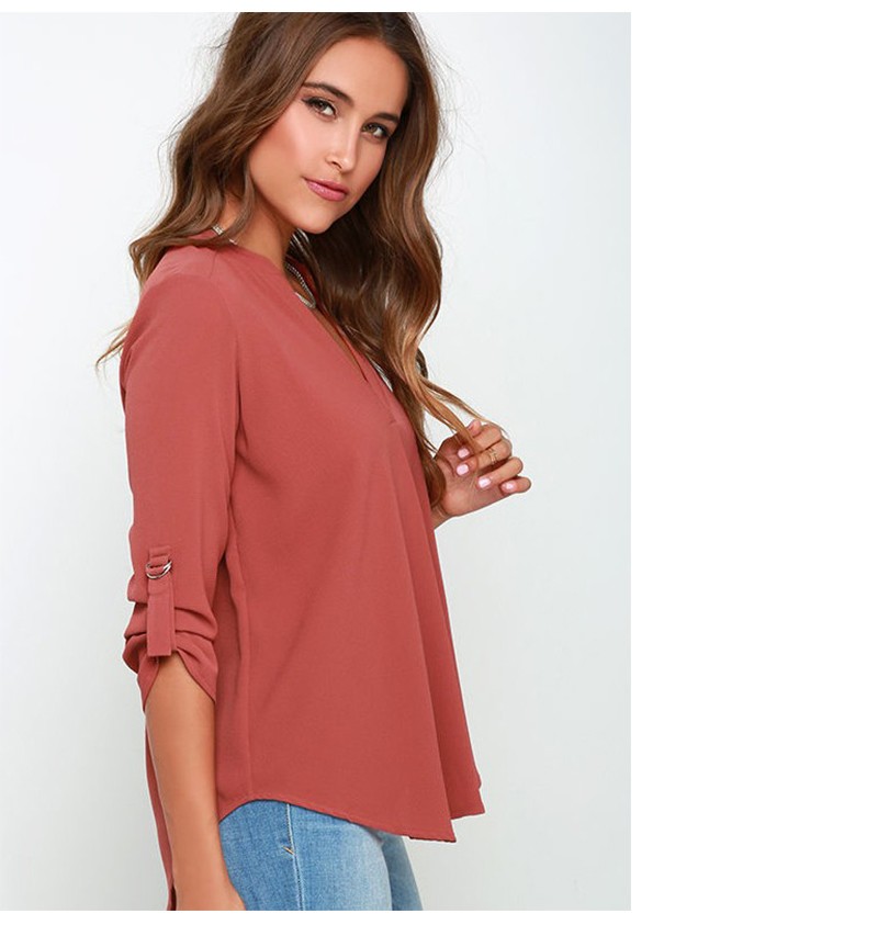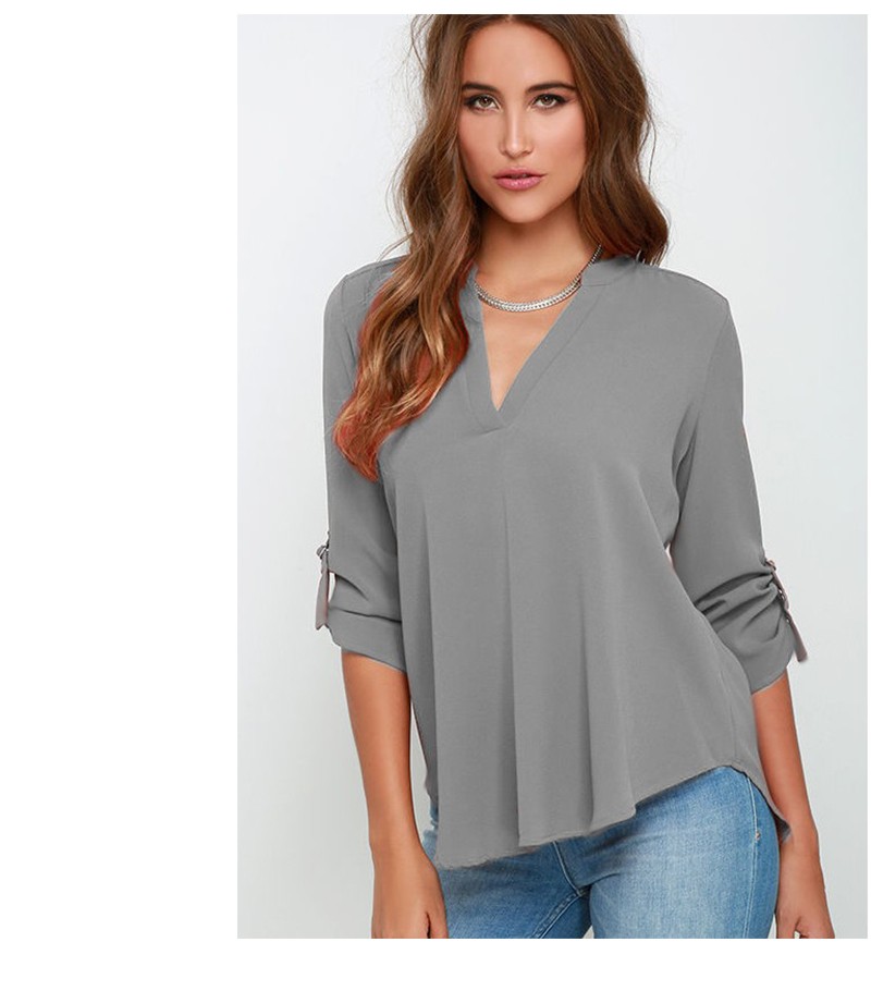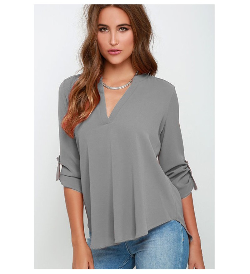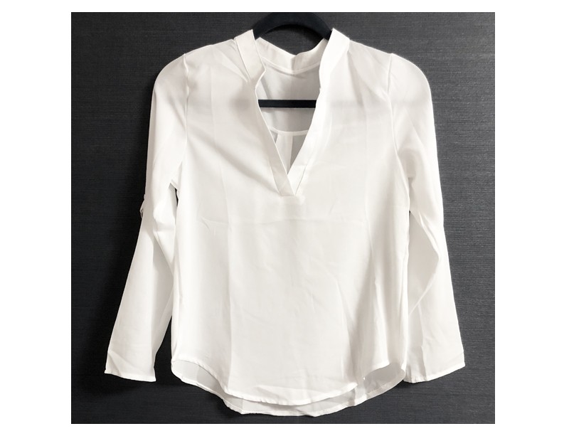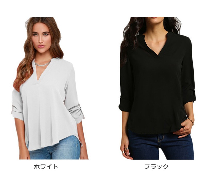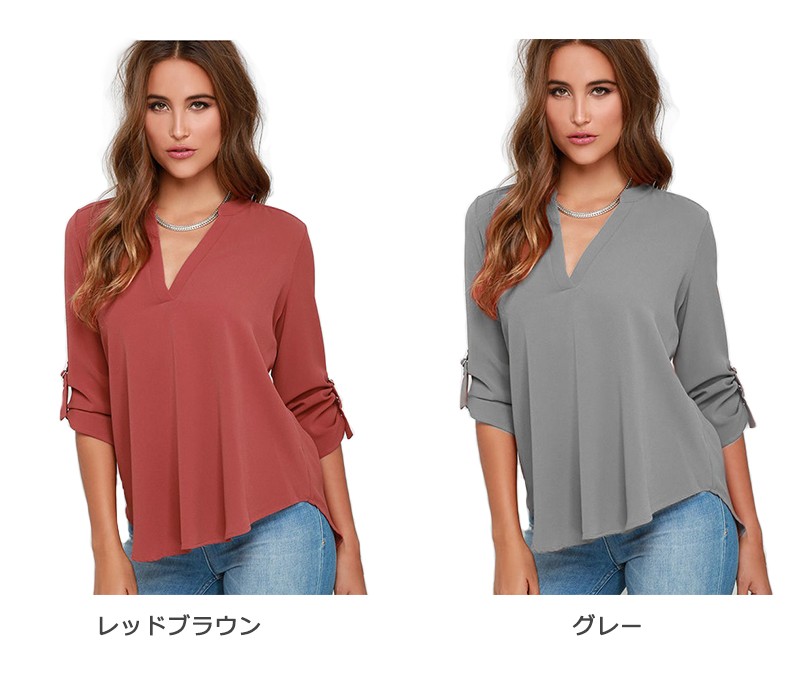 シンプルなデザインで着回しに最適◎Vネックシフォンシャツ! |