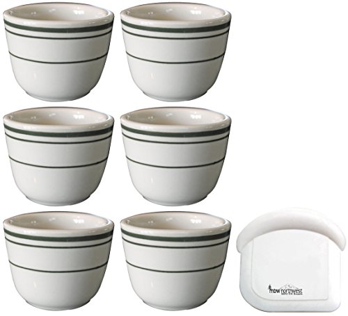 -. Feature : Set of 6 Chinese Teacups with Hand Painted Forest Green Band / Size: 3" Wide by 2.5" Tall, Holds 4.5 Ounces, Dishwasher and Microwave Safe / CAC Brand - Used by many restaurants and food service industries world wide - Stoneware Ceramic / Very Durable, Commercial Grade Ceramic / Includes 1 handy MBW NW Brands pan scraper -. ProductGroup : Kitchen -. ProductTypeName : KITCHEN -. Title : Ceramic Stackable Greenbrier Chinese Teacup with Pan Scraper, 4.5 Ounce, Green Band / American White