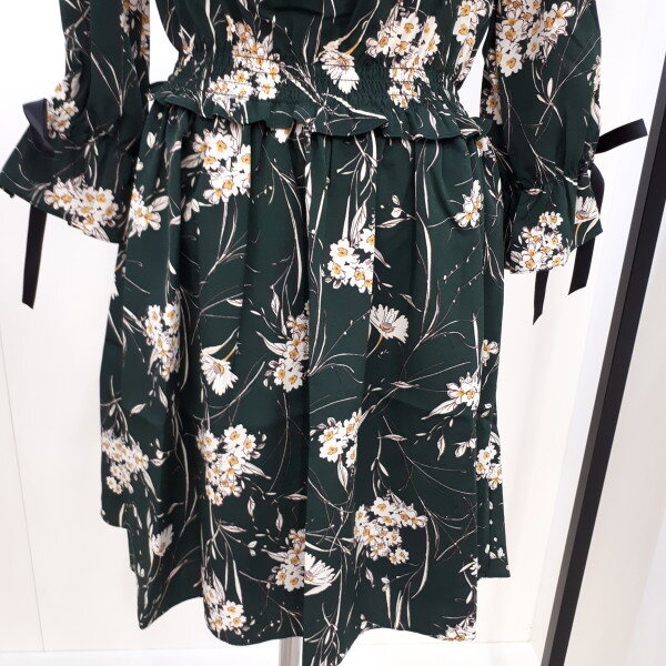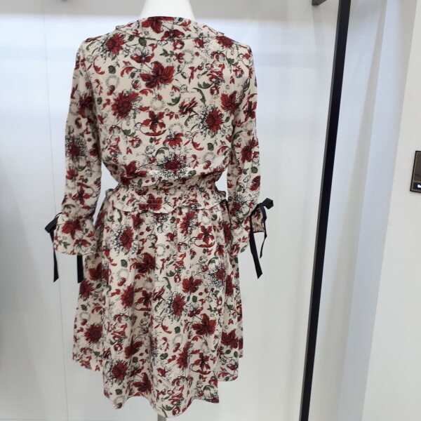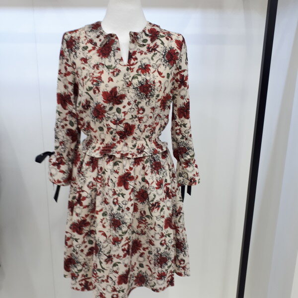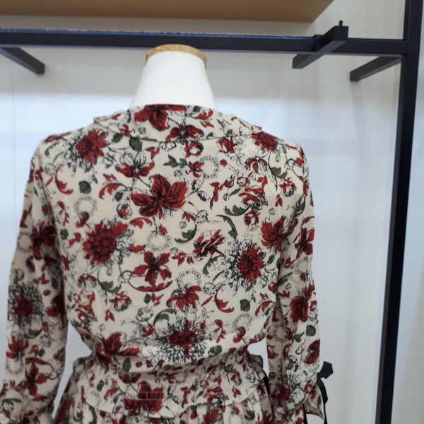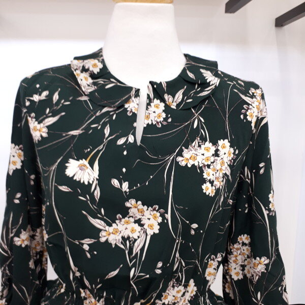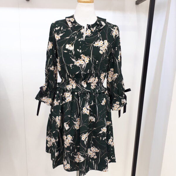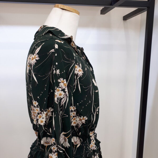 여성스러운 분위기를 연출하기좋은 원피스니다하늘하늘하게 떨어지는 실루엣에 쉬폰원단의 은은한 플라워패턴이 매력적입니다