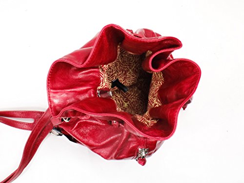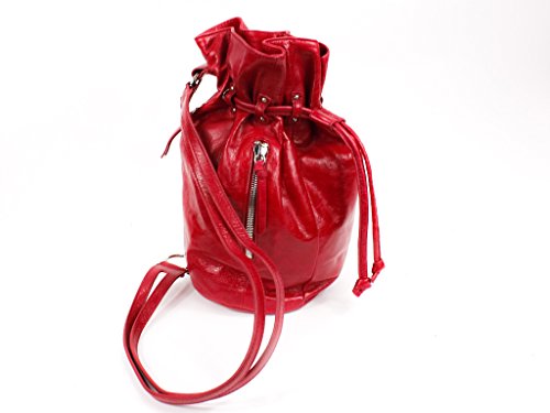 -. Brand : HOBO -. Color : Scarlet -. Department : womens -. Feature : Cutout straps with ring hardware / Cinched drawstring closure laced through studded loops / Additional side zip entry / Exterior zip pocket / Interior cellphone pocket and zip pocket -. ProductGroup : Shoes -. ProductTypeName : HANDBAG -. Size : Medium -. Title : Hobo International Peyton Bucket Backpack