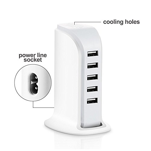 -. Brand : Ohala -. EAN : 6922793729330 -. Feature : Saving Room: 5 USB ports, charge 5 devices simultaneously. / Saving Time: Fast possible charge speed, up to 2.4A per port or 6A in total. / High Compatibility: Compatible with all USB enabled smartphones, tablets, Bluetooth speakers, headsets, cameras, PSP and more / Safety: CE & RoHS certification, prevent overcharge, overcurrent, overvoltage, overheating, short circuit etc. / Perfect Designed: Tower's Upright Design, that doesn't take up so much space on the desk. ABS eco-friendly material, portable size, compact and smooth appearance. -. Label : Ohala -. Manufacturer : Ohala -. ProductGroup : Wireless -. ProductTypeName : AUTO_PART -. Publisher : Ohala -. Studio : Ohala -. Title : Ohala USB Charger, 5-Port Charging Station for Apple iPhone 6S/5/4, iPad Air 2/mini 3, Samsung Galaxy S6/S6 Edg/S5 /Note 4 /3, LG, Nexus, HTC, Nokia, Motorola MP3,MP4, PSP etc. (White)