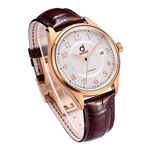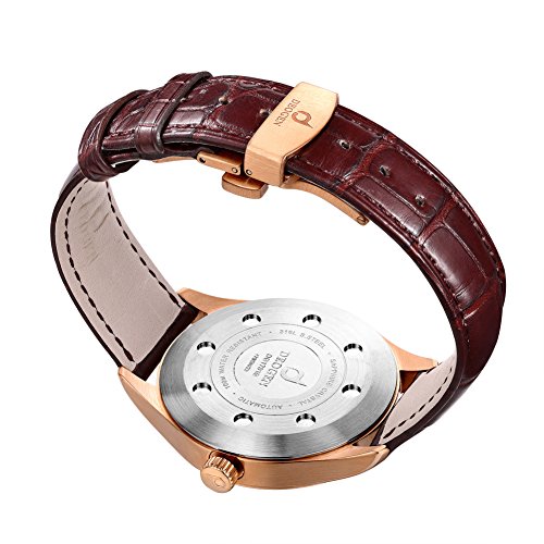 -. Title : Automatic Men Alligator Leather Stainless Steel Watch,Sapphire Crystal Glass,328ft Water Resistant,Sold Stainless Steel Back Side,Perfect Rose Gold Color,Japan Miyota 8215 Movement with 21 Jewels