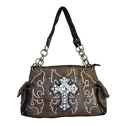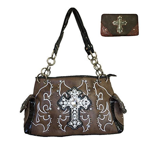 -. Title : Rhinestone Cross Leather Shoulder Handbag Purse One Set