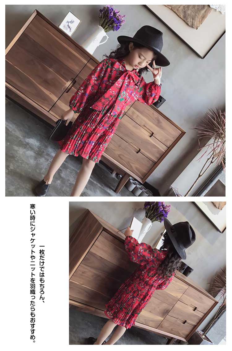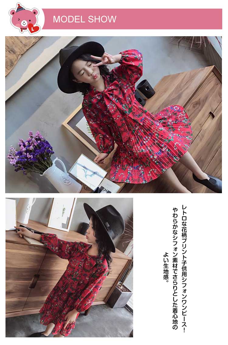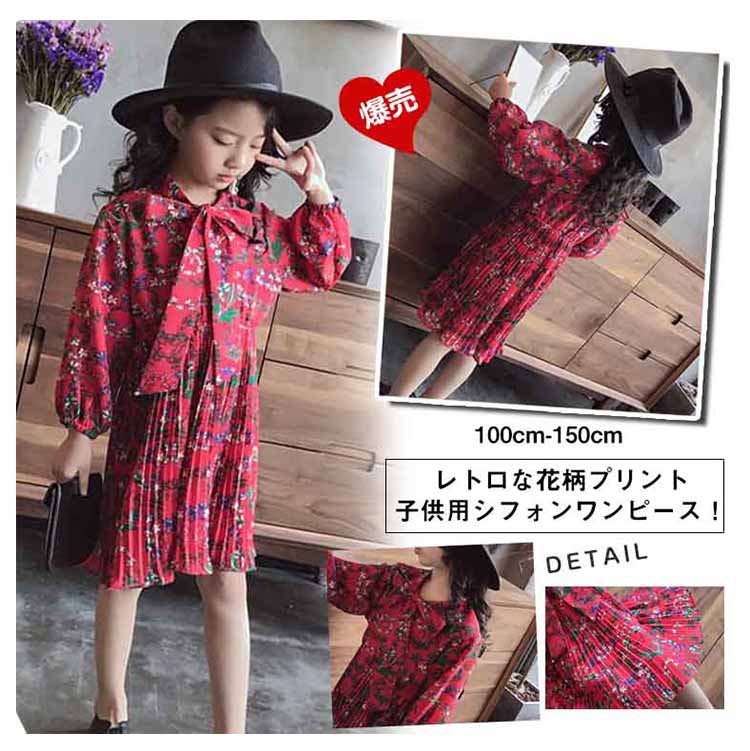 | レトロな花柄プリント子供用シフォンワンピース!やわらかなシフォン素材でさらりとした着心地のよい生地感。シワもなりにくくて体を優しく覆い、女の子らしい可愛さを表現してくれます。小花柄プリント施されて花園の中に遊ぶような気持ちができいます。大きなリボン結び&たっぷりの細めプリーツ加工も嬉しいポイント!一枚だけではもちろん、寒い時にジャケットやニットを羽織ったらもおすすめ。 | |