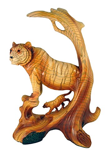 -. Title : StealStreet MME-691 9" Tiger Scene Animal Carving Faux Wood Decorative Figurine, Brown