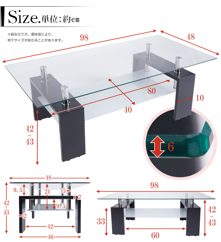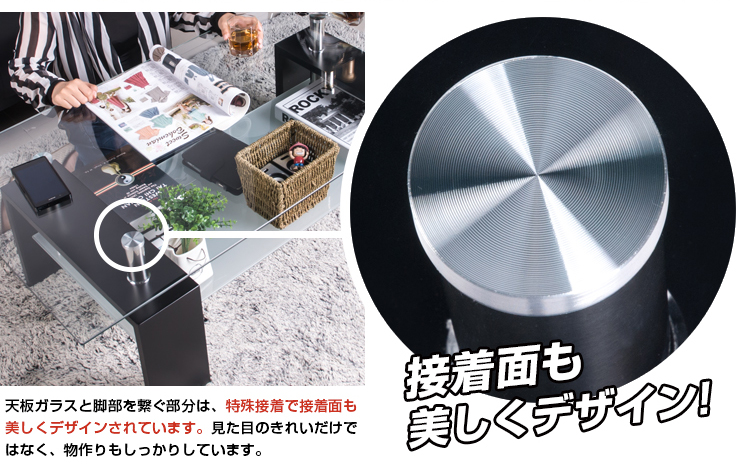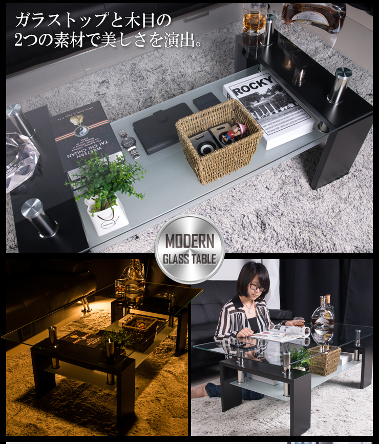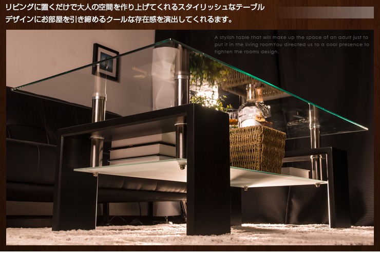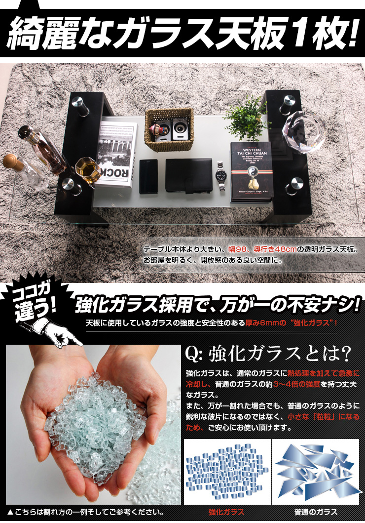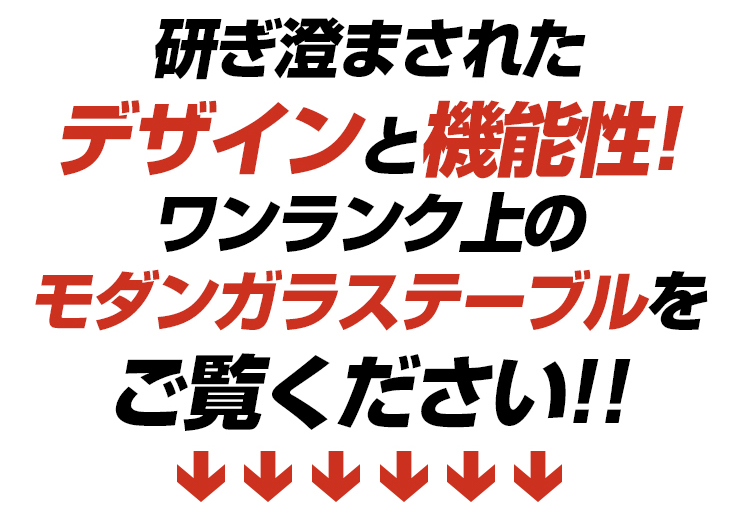 | 商品説明 | リビングに置くだけで大人の空間を作り上げてくれるスタイリッシュなテーブル デザインにお部屋を引き締めるクールな存在感を演出してくれるます。 天板に使用しているガラスの強度と安全性のある厚み6mmの"強化ガラス"! 研ぎ澄まされたデザインと機能性! ワンランク上のモダンガラステーブルを ご覧ください!! |