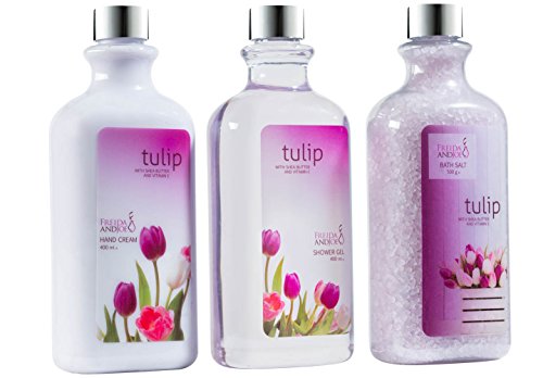 -. Feature : Holder: Distress white natrual wood three sectional caddy- with satin bow / Content:400ml shower gel, 470g bath salts, 400ml hand cream / Color: liquid color lavender, caddy: distress white / About Fragrance: Tulip, a national symbol of Turkey, plays a major role in Turkish arts and culture for centuries. These gorgeous and beautifully fragrant colorful blooms make a common expression for cheerful thoughts and sunshine. / Fragrance notes: Top: green, bergmant, magnolia, ylang ylang, orange, cassis Middle: cinnamon leaf,clove, jasmine, tuberose, osmanthus, pine balsam Base: musk, vanllia, vetier, sandalwood,patchouli