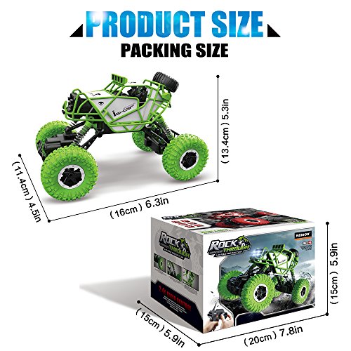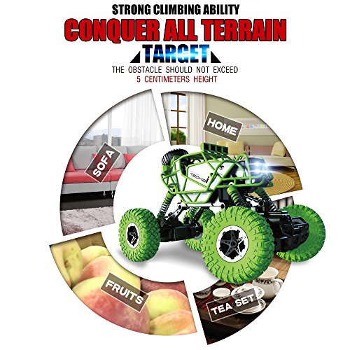 Studio : KEDIOR Publisher : KEDIOR Binding : Toy Product Description Description Name: Climbing over obstacles king Scale: 1:43 Color: Green/Black/Red Remote frequency: 2.4Ghz Car battery: 3*1.5V AAA batteries (provided by users,Not included) Remote controller battery:2*1.5V AA batteries (provided by users,Not included) Action time : About 20 minutes (Request: Install New AA/AAA Batteries) Car size: 16*13.4*11.4cm Radio control distance: About 60m Ages: 6 Packaging: Foam Box or Color Box for choosing Functions: Forward, back, left, right, can climb 5CM obstacles, wall 90 degrees can be climbed Features 2.4Ghz 4WD RC climbing car with high strength shock. Oversized Tires - the tires are hollow and elastic. 2 Motors - front one motor, rear one motor. Playing indoor Car with LED light. What You Will Get 1*Remote Control Car 1*Remote Controller