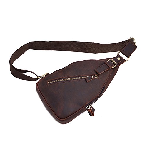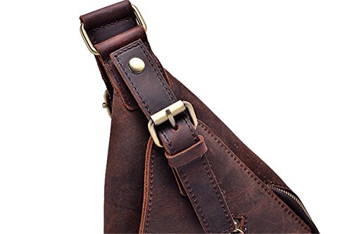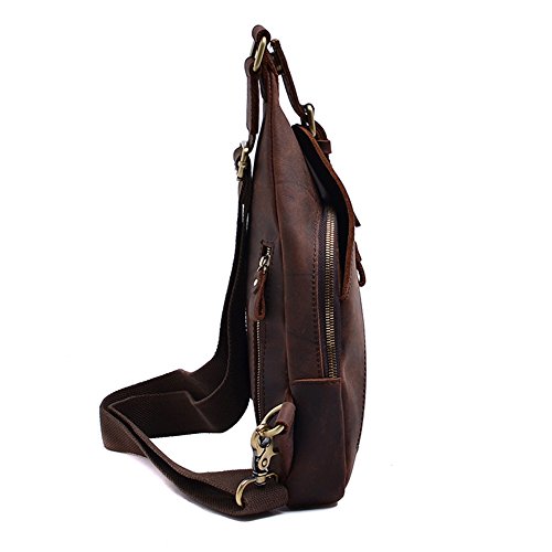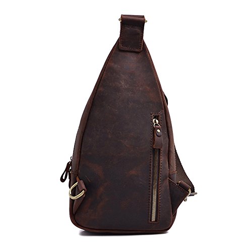 -. Feature : Material: Crazy horse leather / Size: 18cm(length)*4cm(thickness)*36cm(height) / 7.1*1.6*14.2 inch / Retro men's multipurpose backpack: chest pack/crossbody bag/shoulder bag/ unbalance sling bag / Structure: 1* Main zipper pocket + 1 * front zipper pocket + 1 * back zipper pocket / Can hold your phone, Ipad, wallet, umbrella, etc