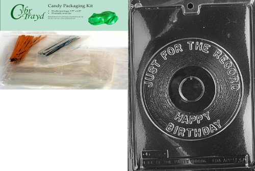 Cybrtrayd Just for The Record-Happy Miscellaneous Chocolate Candy Mold with Packaging Bundle of 50 Cello Bags, 25 Gold and 25 Silver Twist Ties and Chocolate Molding Instructions