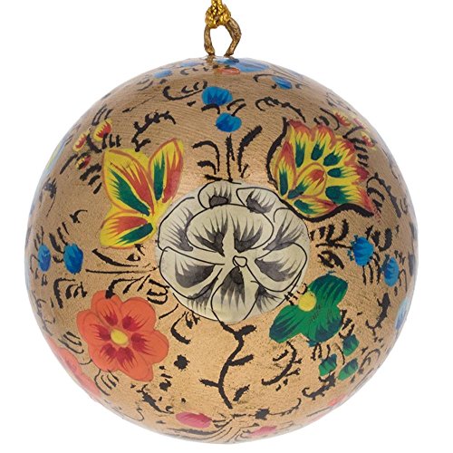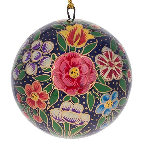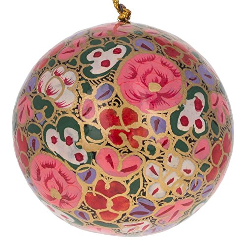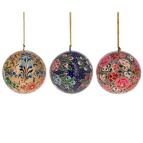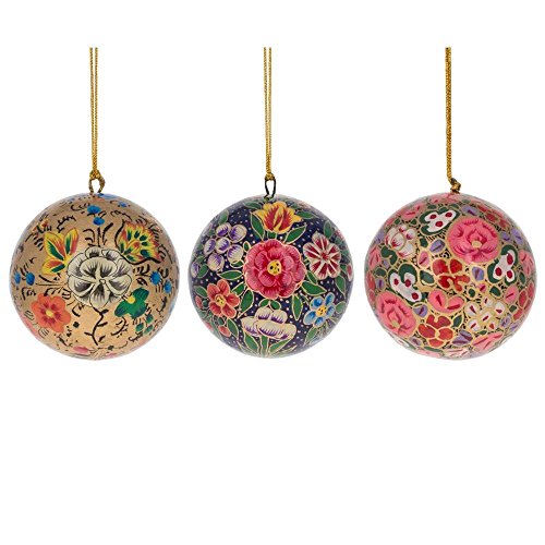 3" Set of 3 Floral Oriental Paper Mache Christmas Ball Ornaments