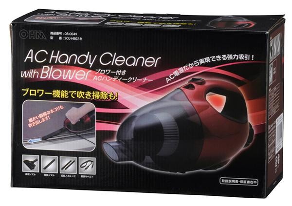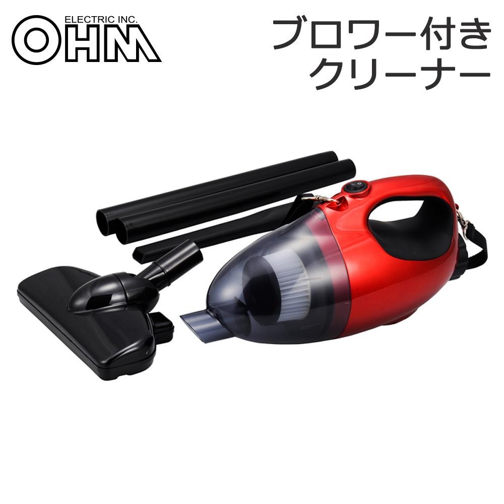 ブロワー(送風)機能付きで吹き掃除もできます。延長ノズル・隙間ノズル・床用ノズル等の多彩なアタッチメントで、様々な場所のお掃除ができます 製造国:中国 ※サプライヤー直送品 ご注文後2~3営業日後の出荷となります【商品名】オーム電機 OHM ブロワ―付きACハンディクリーナー(電気掃除機) SOJ-HB02-R