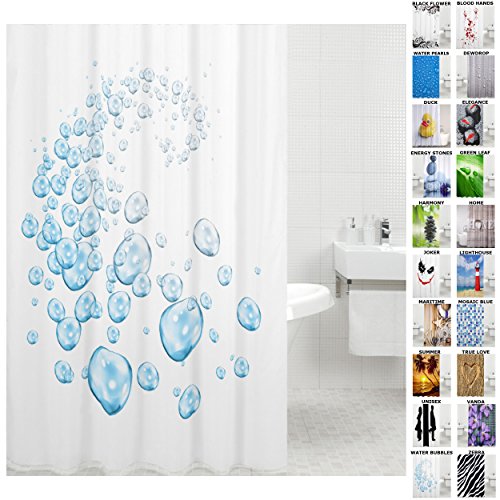 Sanilo Shower Curtain, Wide Choice, Mildew Resistant, 100% Waterproof, Machine Washable, Hooks are Included, Water Bubbles, 72-Inch by 78-Inch