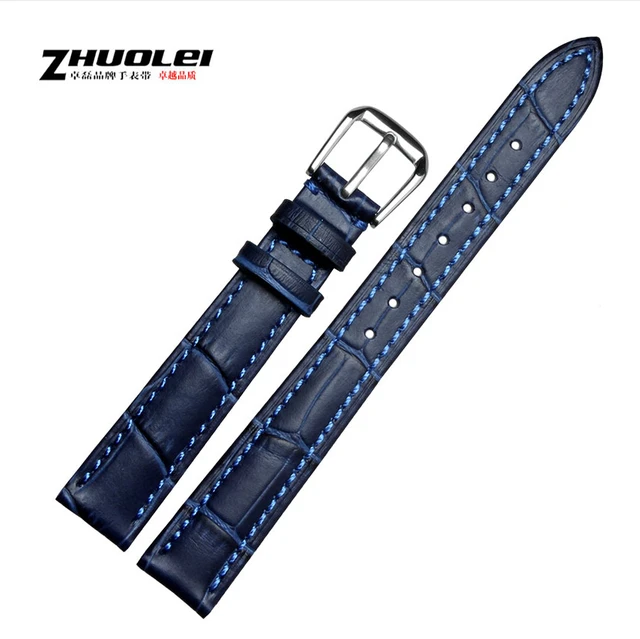 | [해외] 14 미리메터 블루 정품 가죽 시계 밴드 남성 또는 여성 숙녀 스트랩 |
