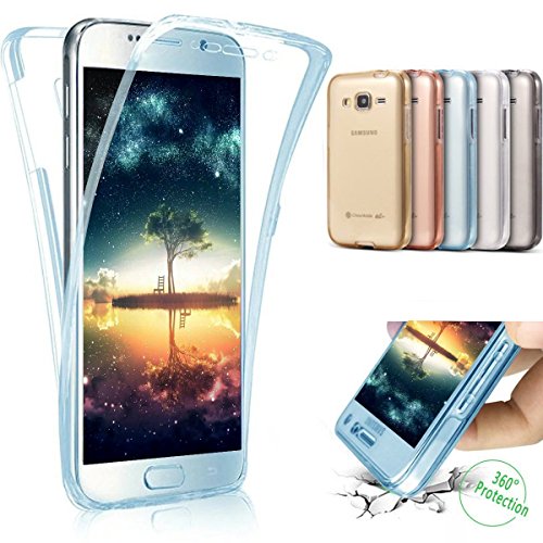 Galaxy Grand Prime Case, Galaxy Grand Prime TPU Case, PHEZEN 360 Full Body Protective Ultra-Slim Soft Clear TPU Case Silicone Rubber Bumper Case Cover for Samsung Galaxy Grand Prime SM-G530, Blue