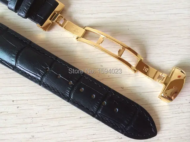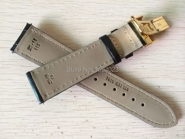 | [해외] 20 미리메터 (Buckle18mm) T063639 T063617 고품질 골드 도금 핀 버클 + T063610 블랙 정품 가죽 시계 밴드 스트랩 남성 |