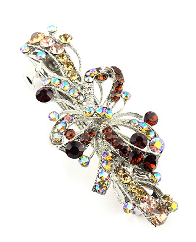 Women's Rhinestone Metal Hair Barrette Clip Hair Pin Antique Silver IMB2146, Brown