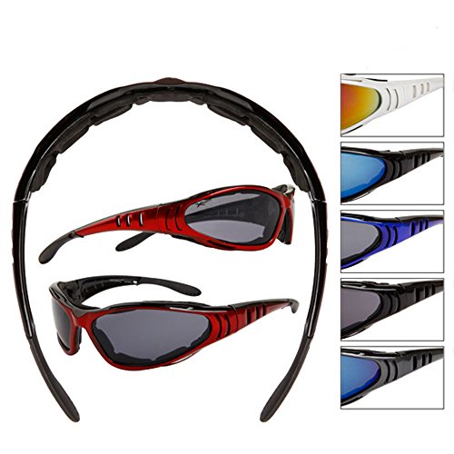 Ideal for motorcycle riders! These Biker style sunglasses wrap snugly around your face to protect your eyes. Their sturdy frame with unique inside foam padding will keep out dirt, wind and all those bugs ! ATV, minibike, bicycle, or any active sport will be safer with a pair of Xsportz. Adult Men Temple Width 5.87 inchFeature