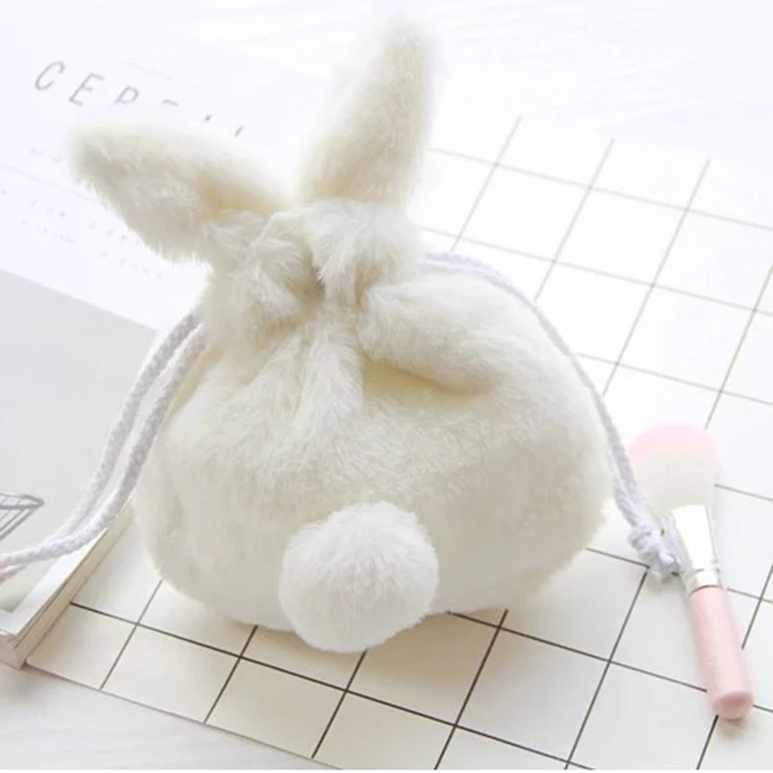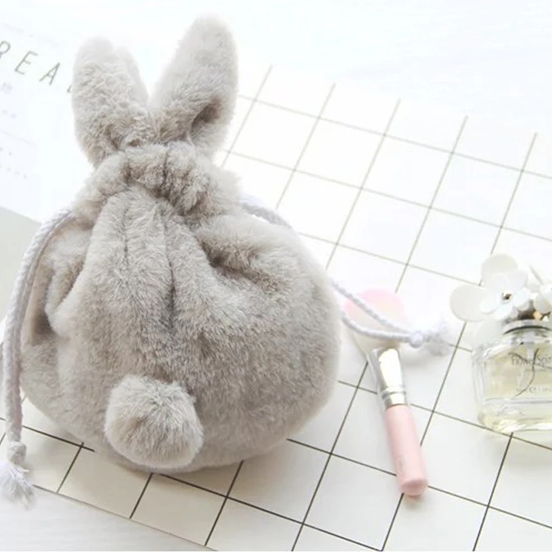 areslandかわいい化粧品袋女性メイクアップ化粧品オーガナイザーバッグ旅行化粧ケースぬいぐるみラビット巾着トイレタリーバッグ