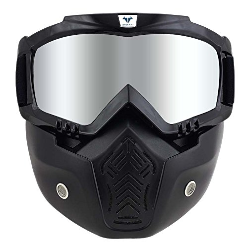 -. Title : Woljay Motorcycle Riding Mask Harley Style with Goggles for 3/4 Open Face Motorcycle Helmet - Matte Black Mirror Lens