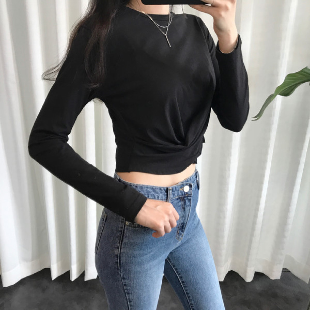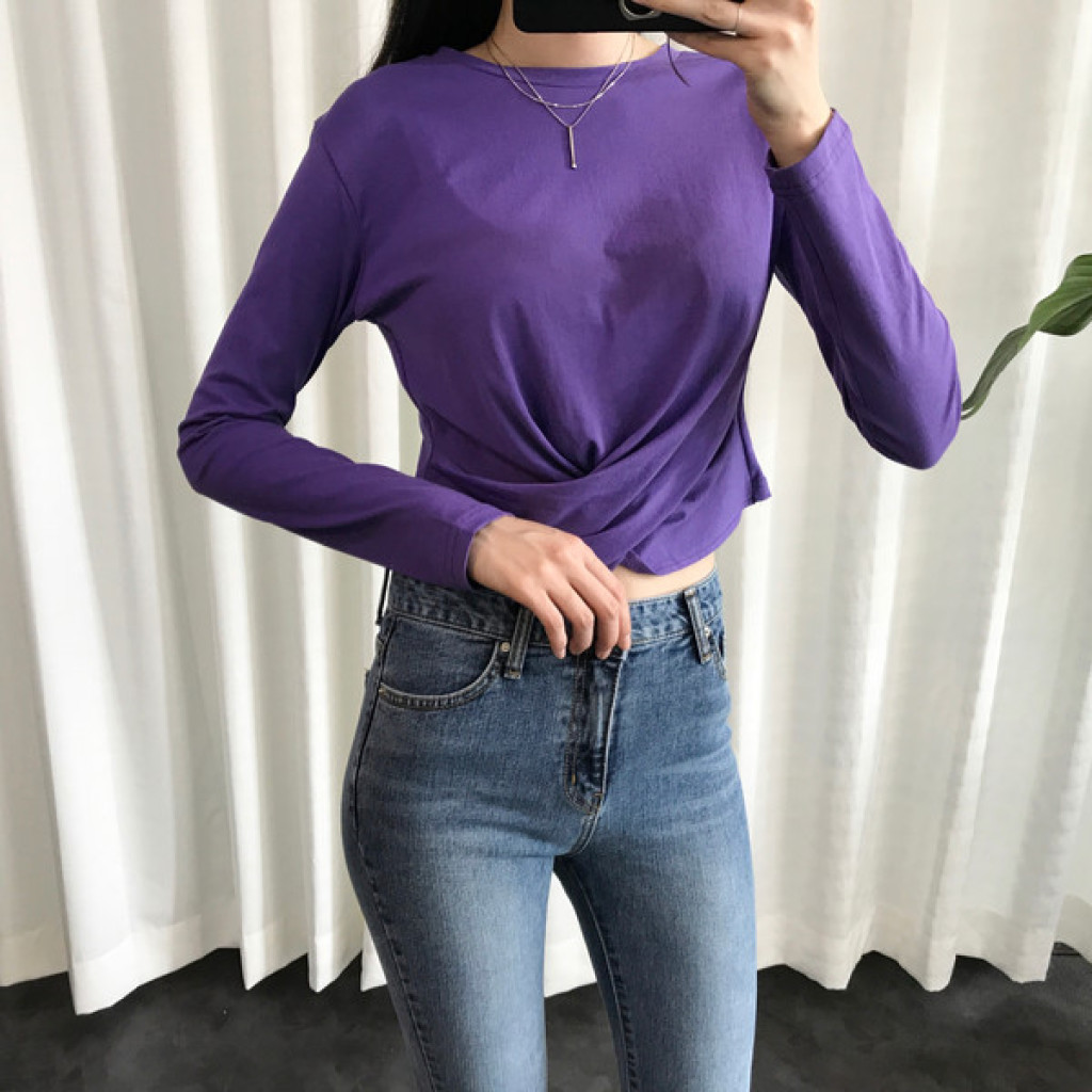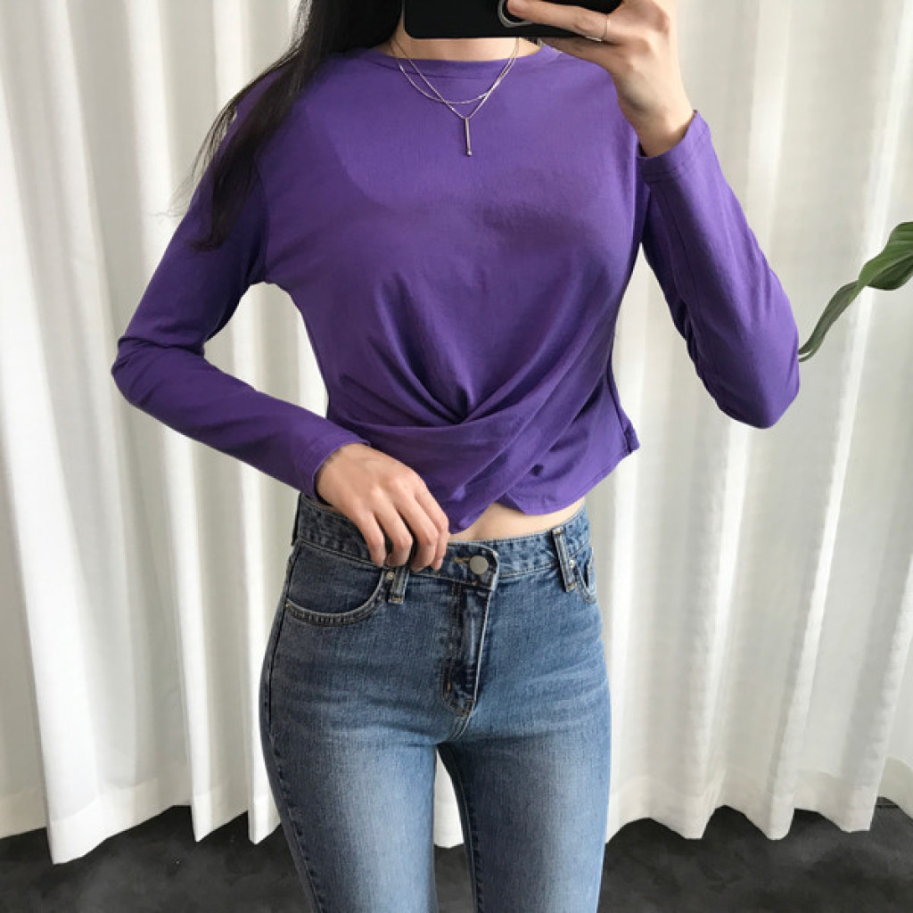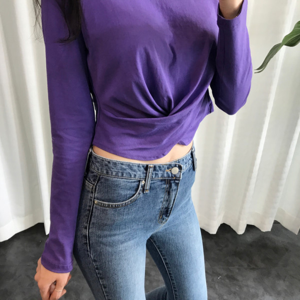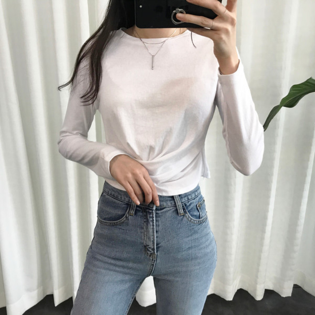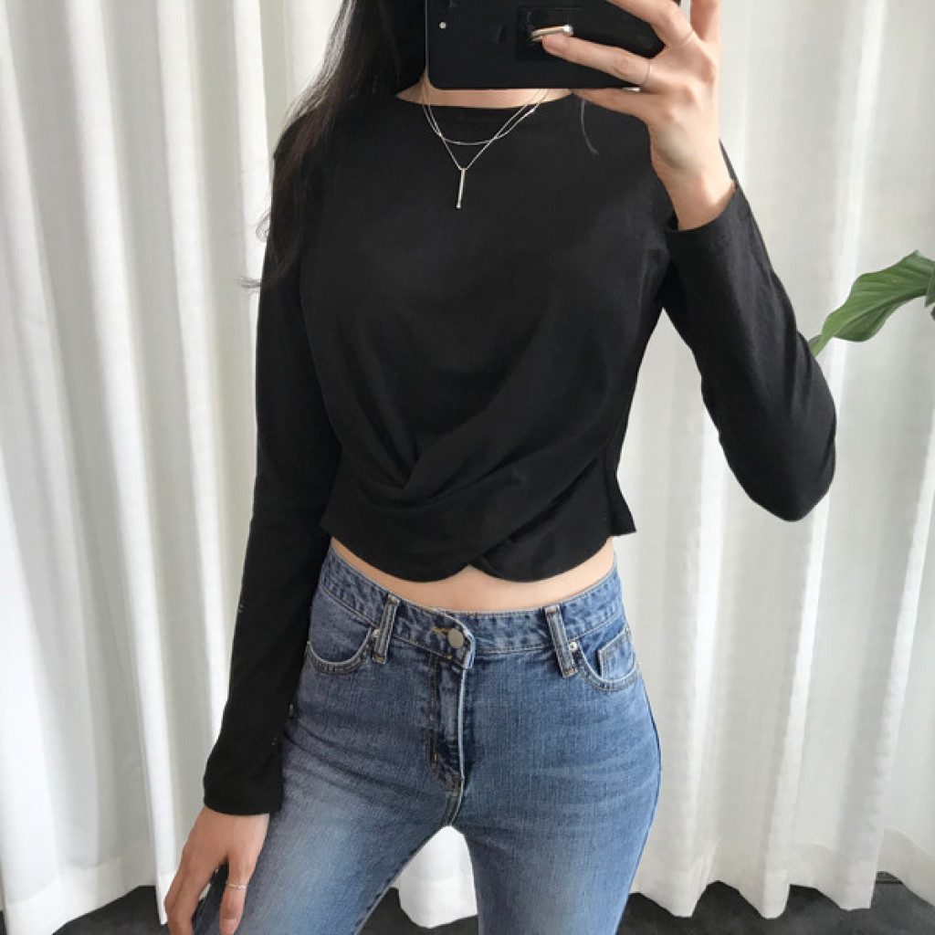 티셔츠 정면 밑단에 크로스로 꼬임
