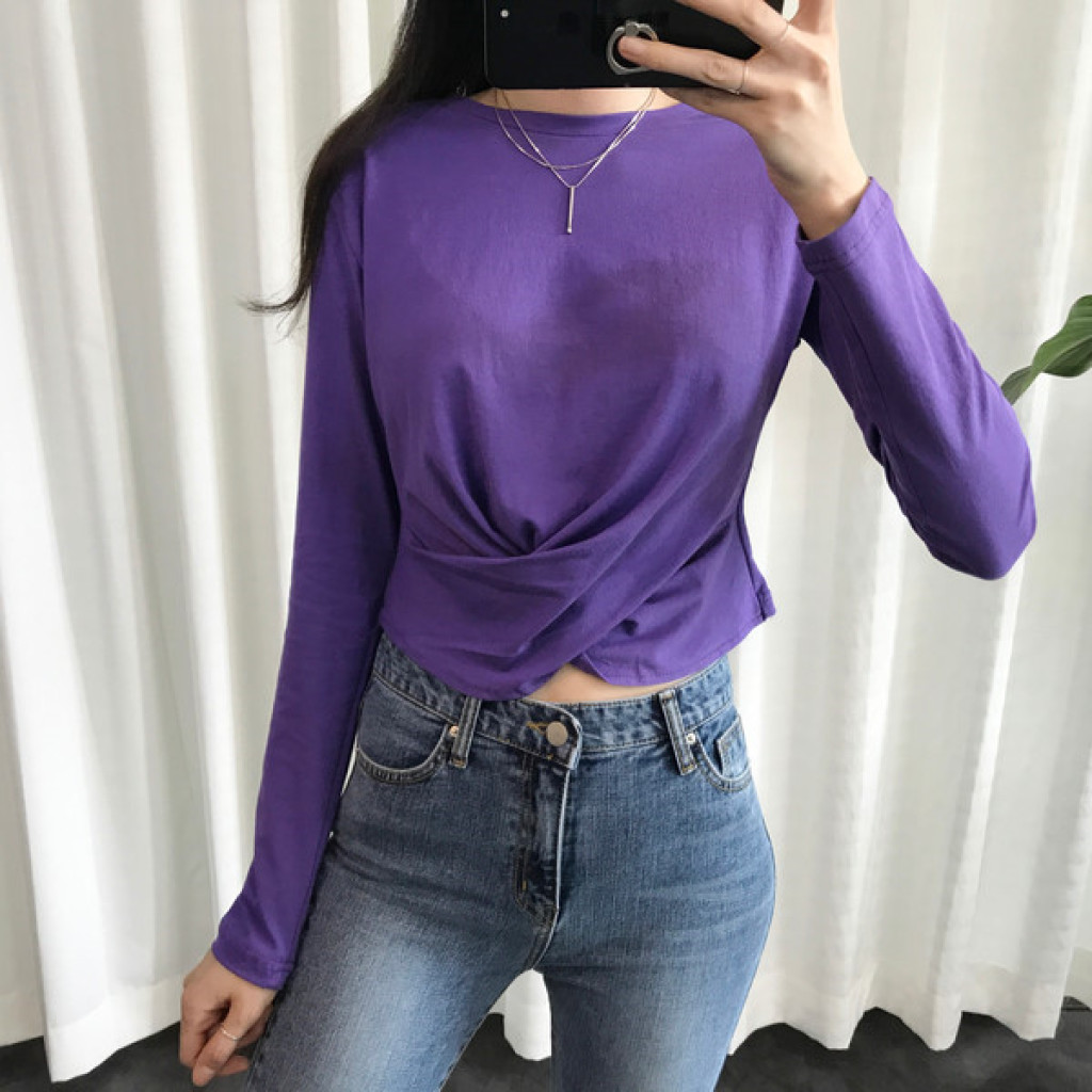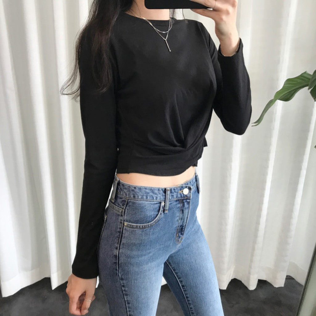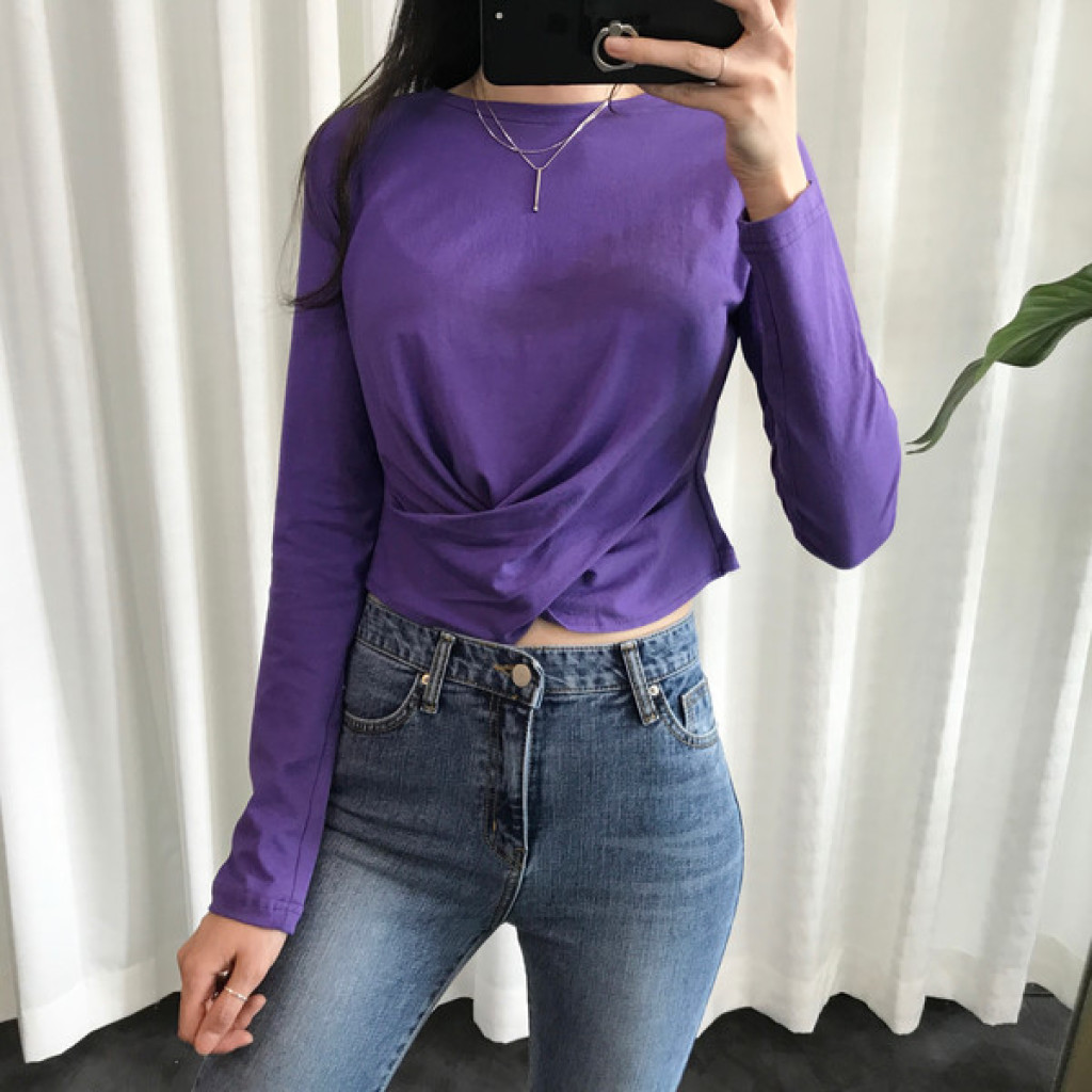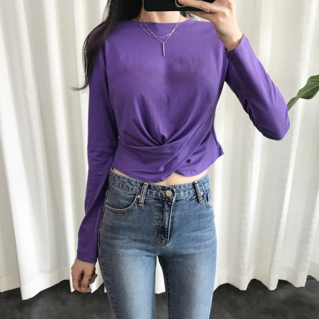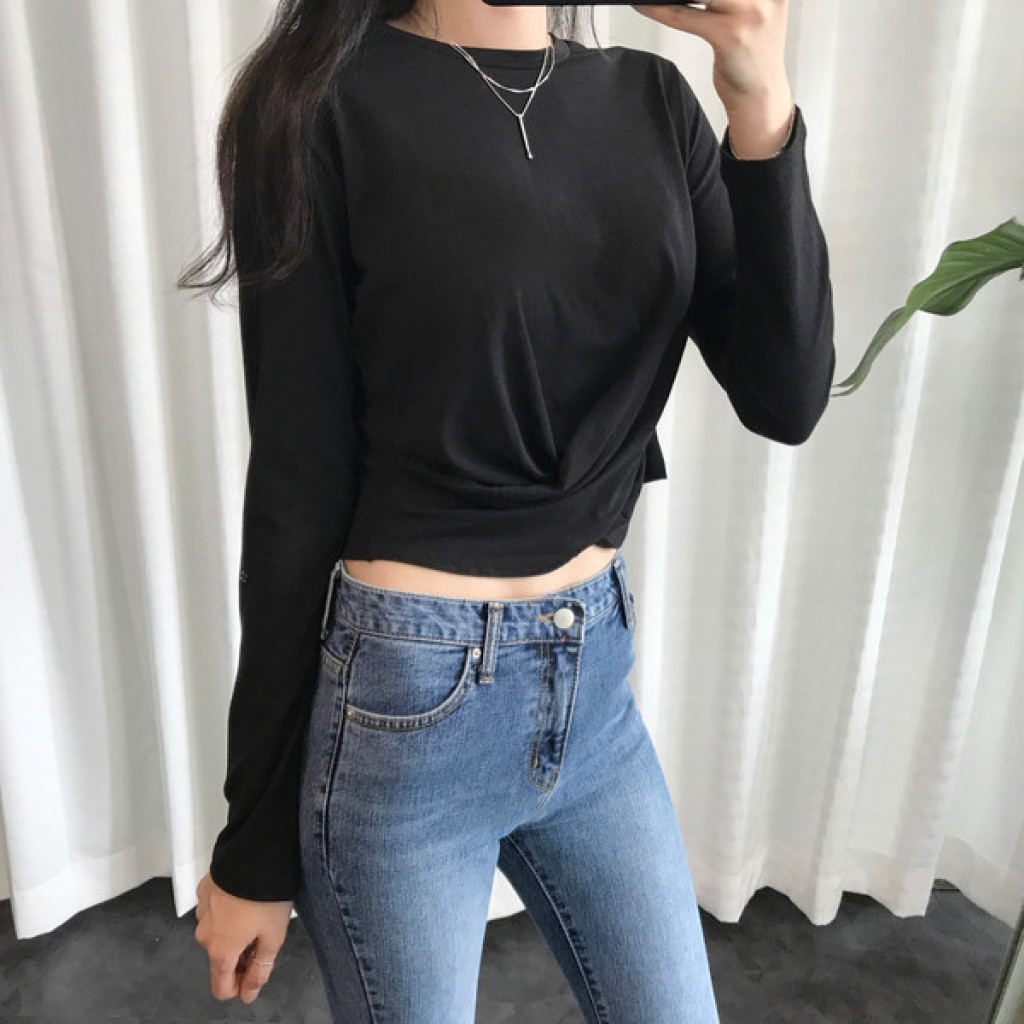 티셔츠 정면 밑단에 크로스로 꼬임