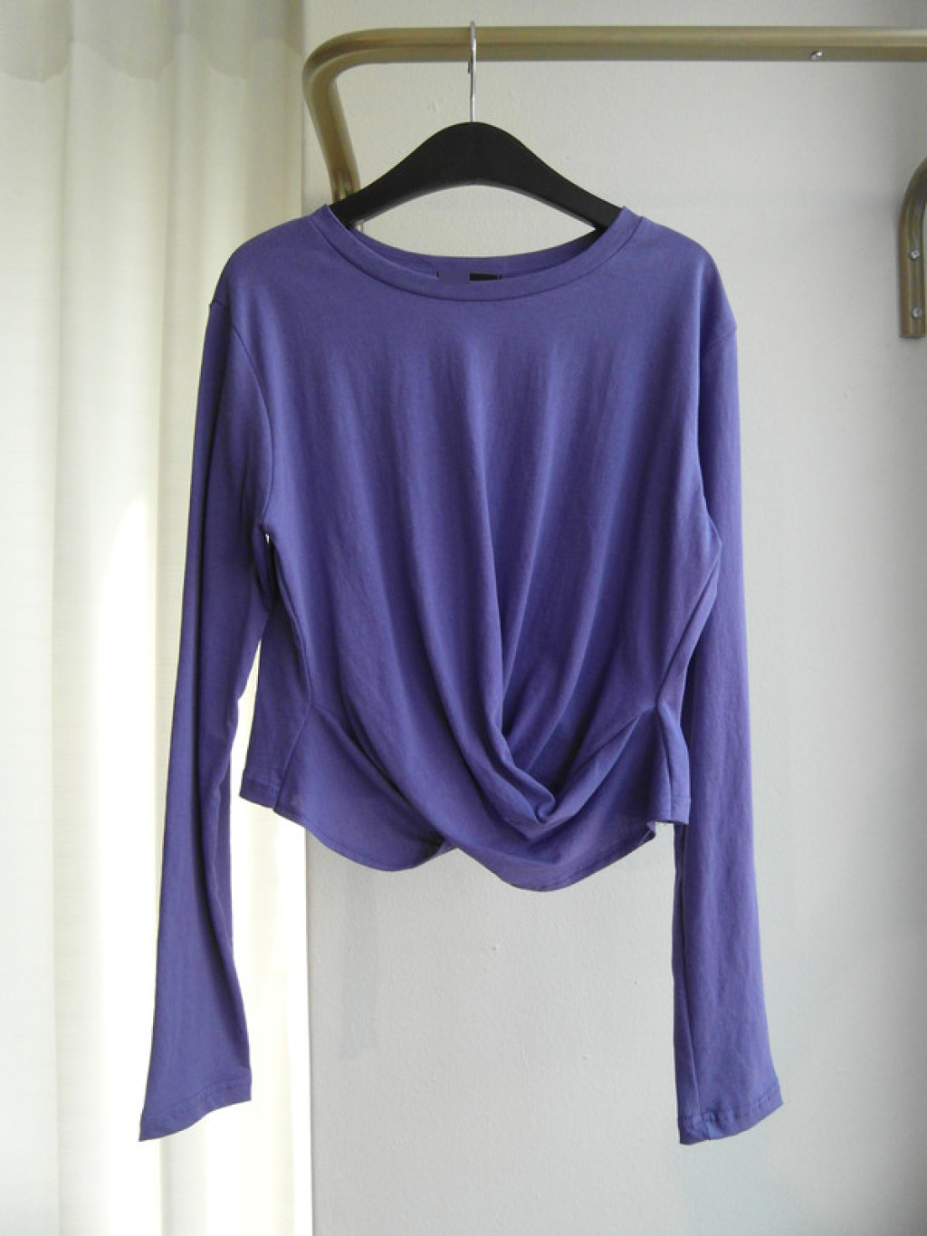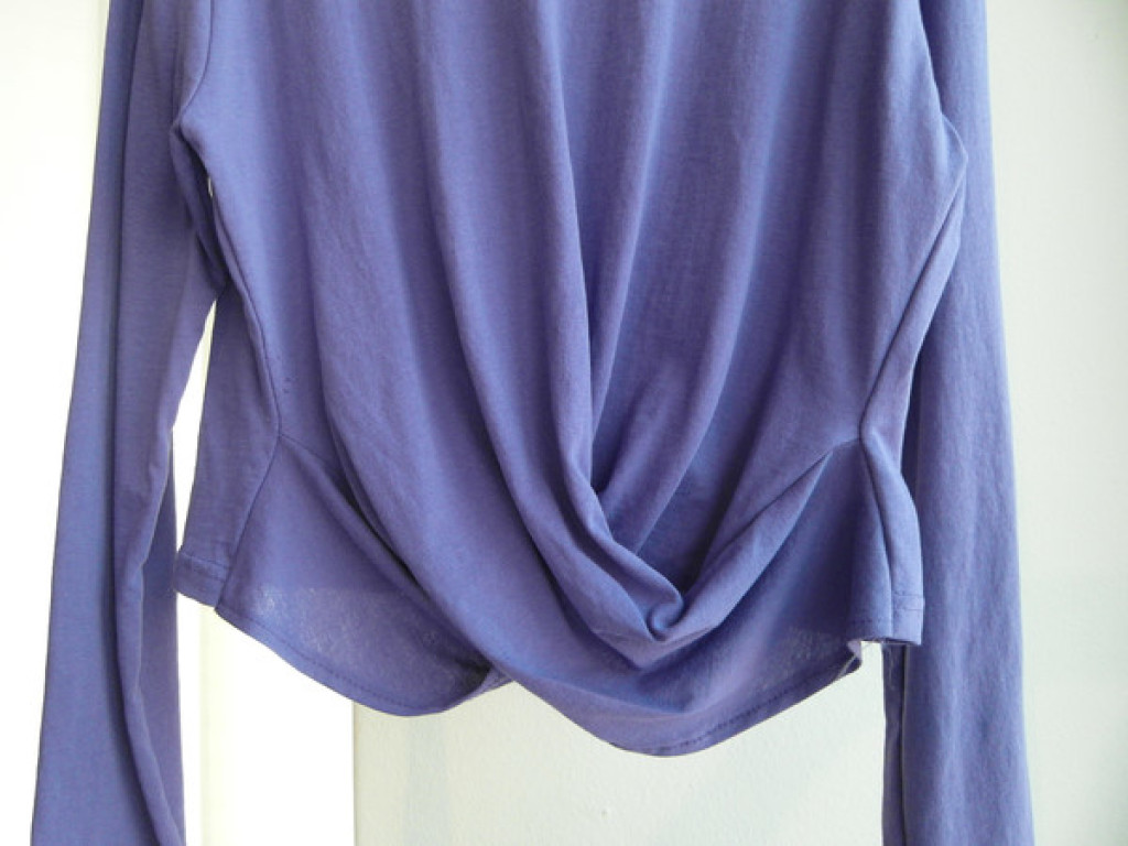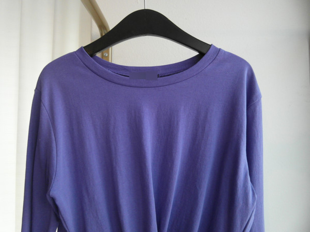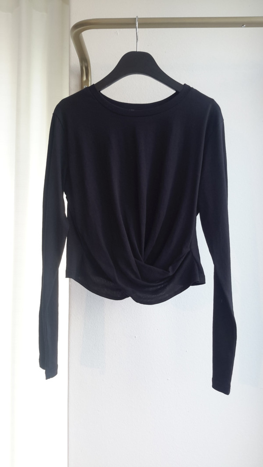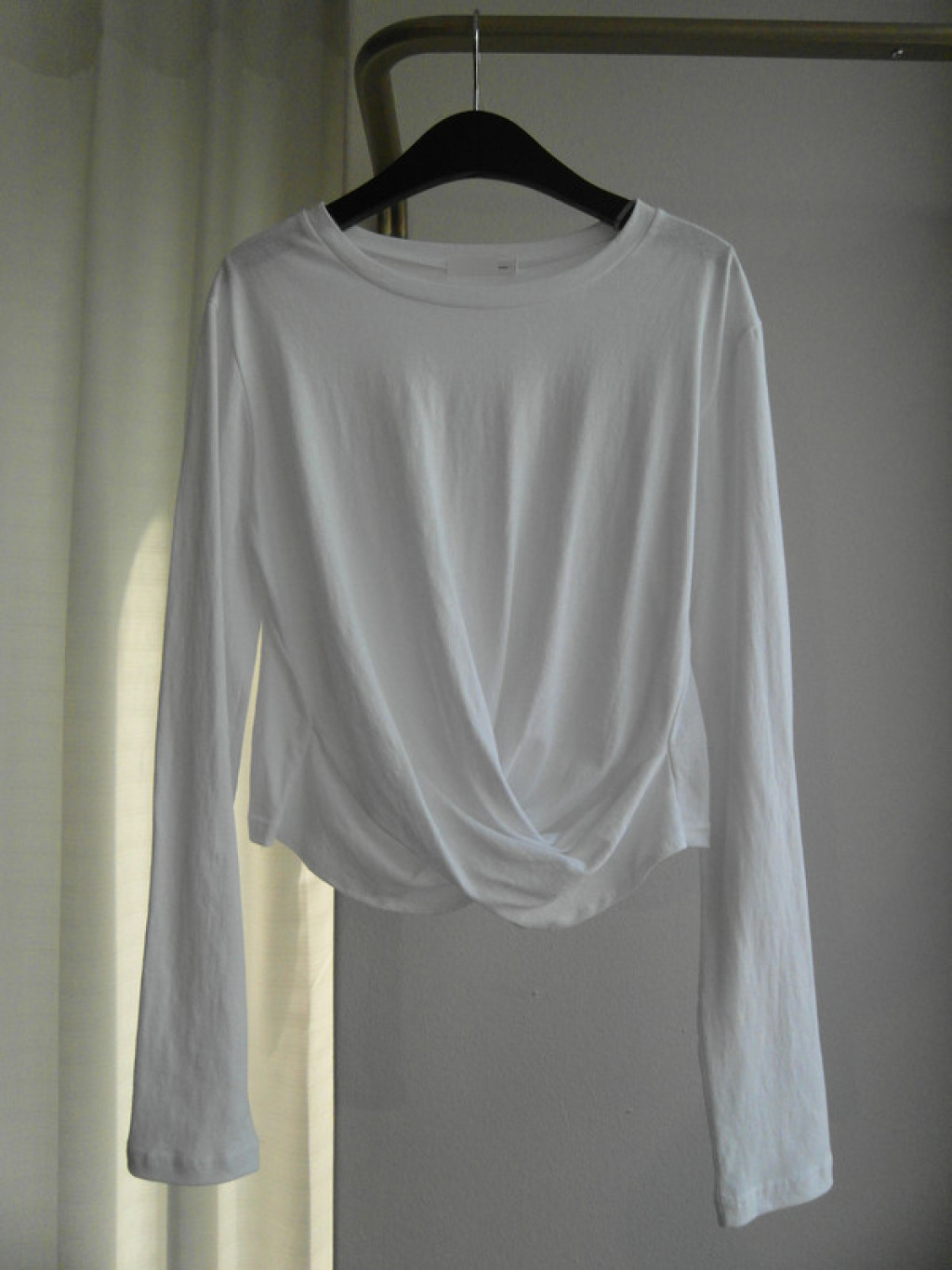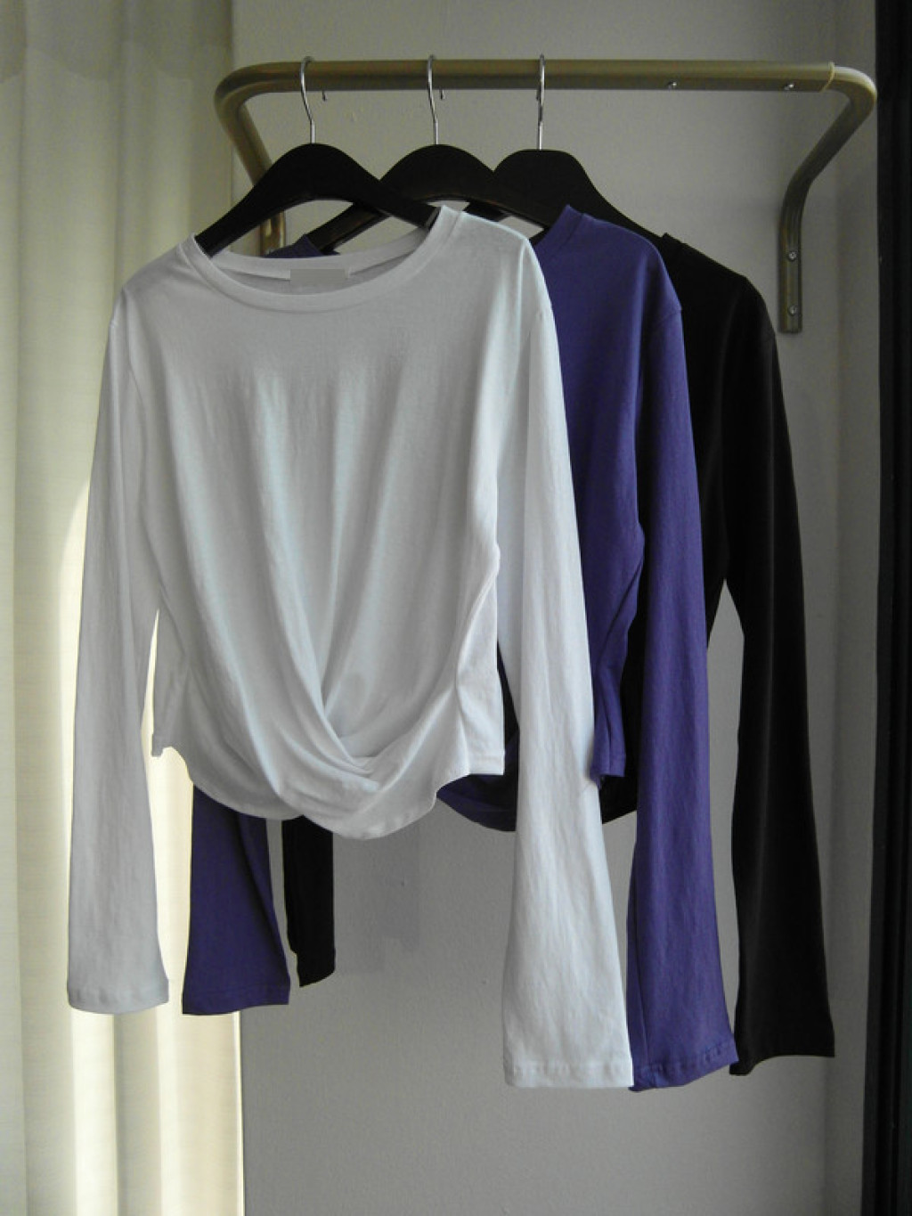 티셔츠 정면 밑단에 크로스로 꼬임