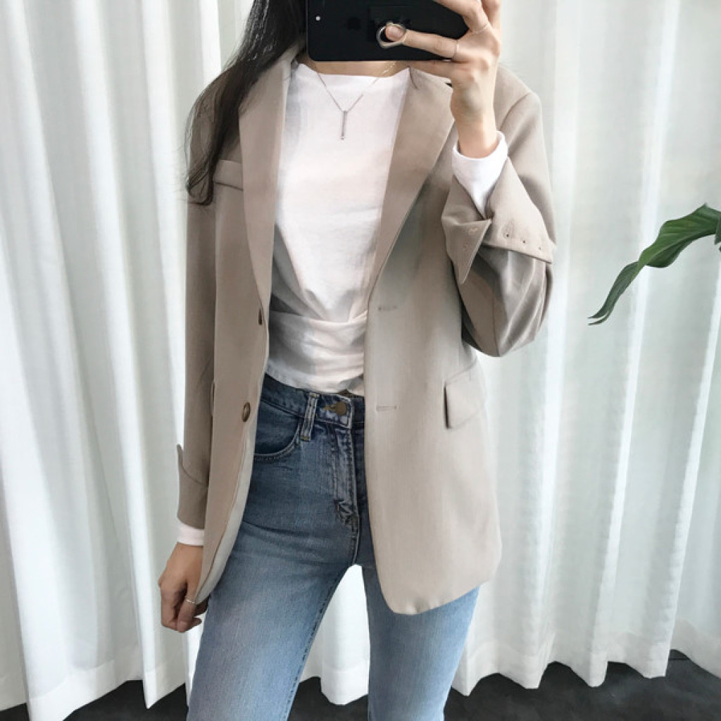 소매나 전체적인 핏은 루즈하고 여유로운 스타일이라