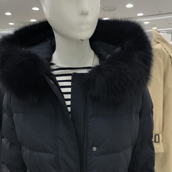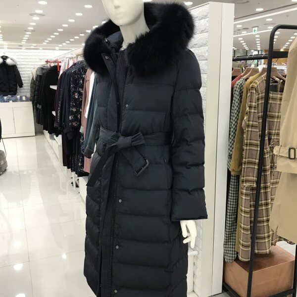 풍성한폭스카라털로 여성스러운 슬림롱패딩 입니다가볍고 따뜻하게입기좋아요