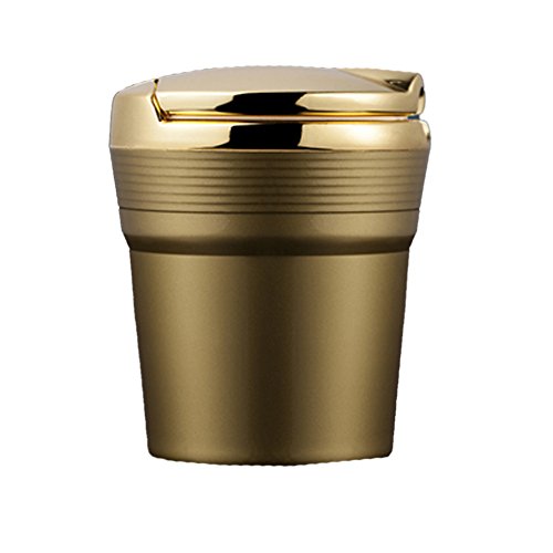 -. Feature : Ashtray lid made of alloy material / The liner made of high fire-retardant PBT materials / Lights up when lid is raised in dark conditions / Removable interior cleaning / Size: Height: 3.52"/9cm, Bottom Diameter: 2.34"/6cm
