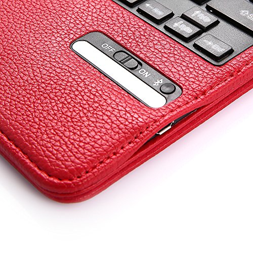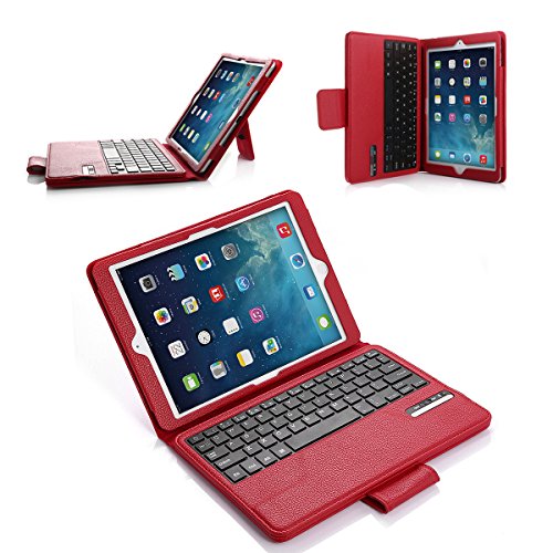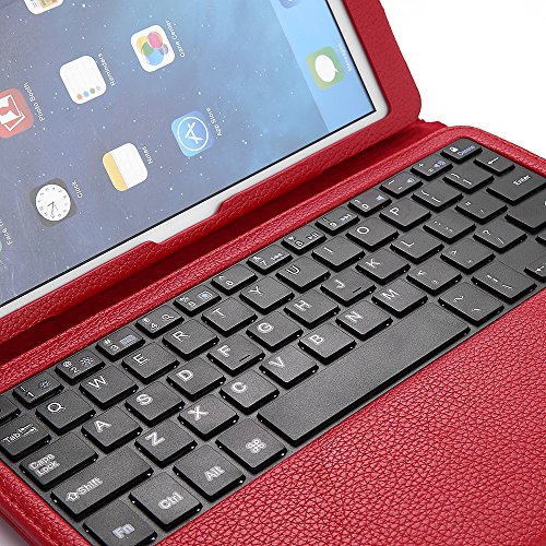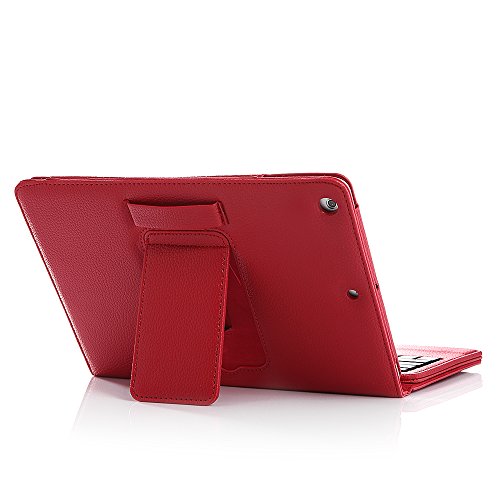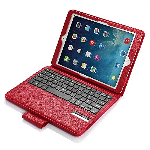 iPad Air / iPad Air 2 Keyboard + Leather Case, Poweradd Removable Bluetooth iPad Keyboard Case + Auto Wake/Sleep Function, Built-in Stand for Apple iPad Air 1/2, iPad 5/6 [Apple iOS 10+ Support] - Red