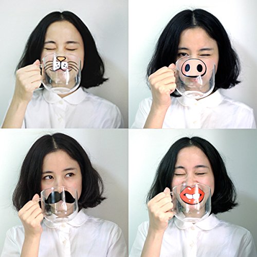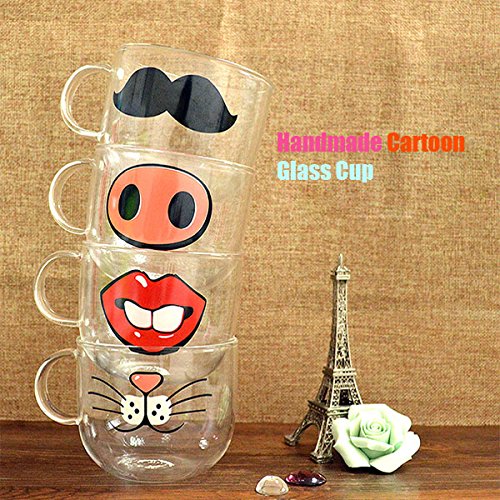 -. Feature : Material: Borosilicate Glass / Pattern: Teeth, Beard, Cat, Pig Nose / Diamensions: 10x8cm/3.9"x3.4" / Capacity: 501-600ml / Package Includes:1 x Handmade Cartoon Glass Cup