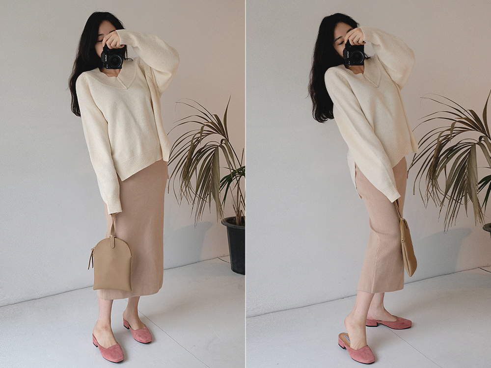 군더더기 없이 떨어지는 핏으로 부담없이 입을 수 있는 롱스커트!