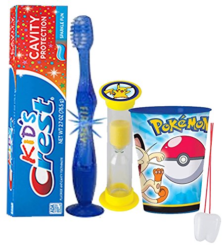 -. Feature : Turn something your kids have to do into something they want to do with the help of Pikachu & Friends...Because when brushing is fun, it gets done! / (1) Firefly Youth Flashing Lights Suction Cup Toothbrush (Assorted Colors) (1) Kids Crest Cavity Protection Sparkle Fun Toothpaste, 2.7 oz / (1) Pokemon 16 Oz Mouthwash Rinse Cup! Doubles As Toothbrush Holder! / (1) Dentist Recommended 2 Minute Pokemon Themed Brushing Timer (Assorted Styles) / Plus Bonus "Remember to Brush" Visual Aid Tooth Saver Necklace. Hang it in their bathroom or by their bed so they remember to keep their chompers sparkly fresh. You could also use these tooth charms to save one of your child's baby teeth.